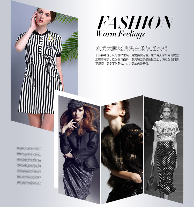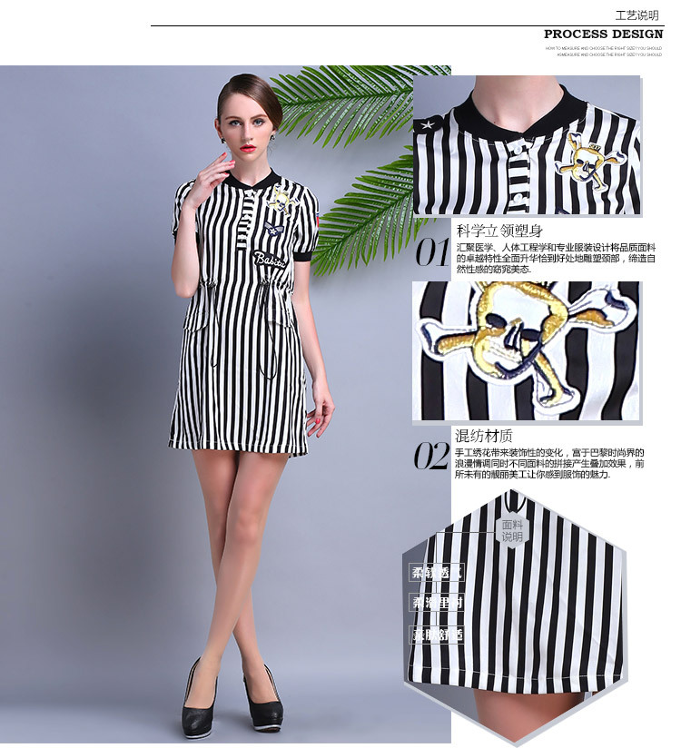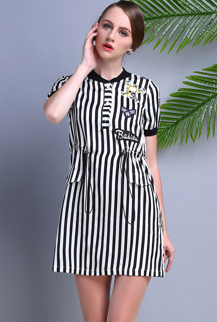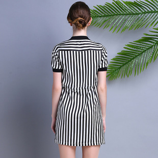 > 2015夏装新款 欧美女装时尚气质刺绣黑白条纹连衣裙