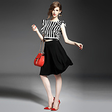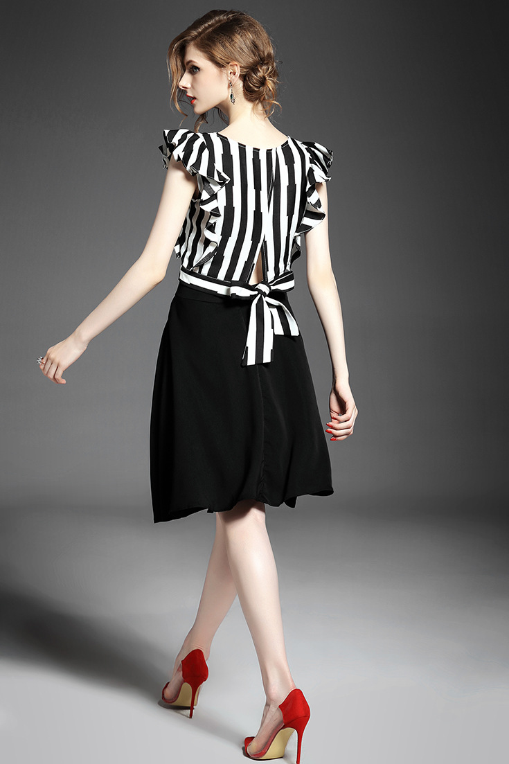 2015夏 欧美时尚不规则后背开叉真丝拼接条纹上衣+阔腿短裤套装