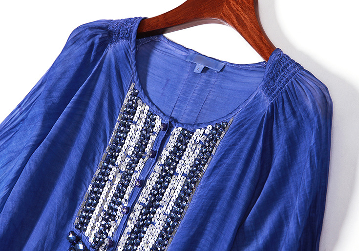 2015春夏季新款欧美风印花真丝连衣裙七分袖衬衣领时尚A字裙