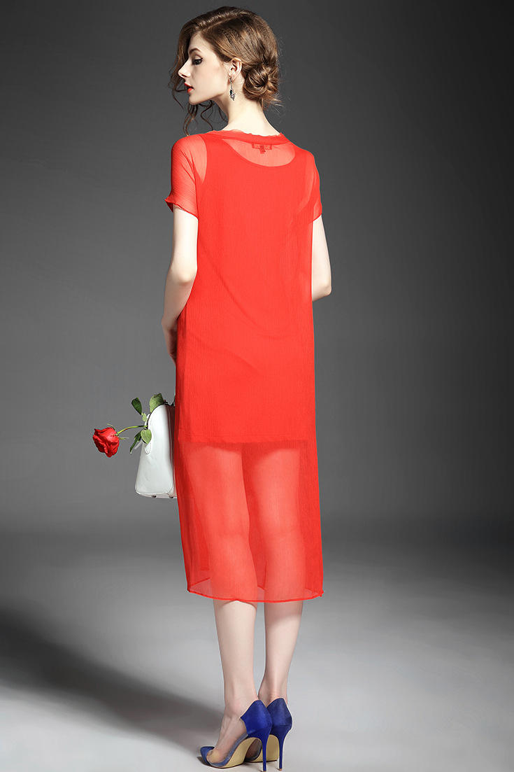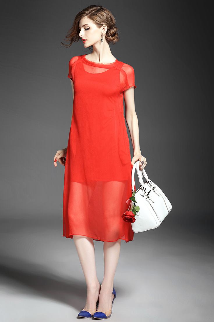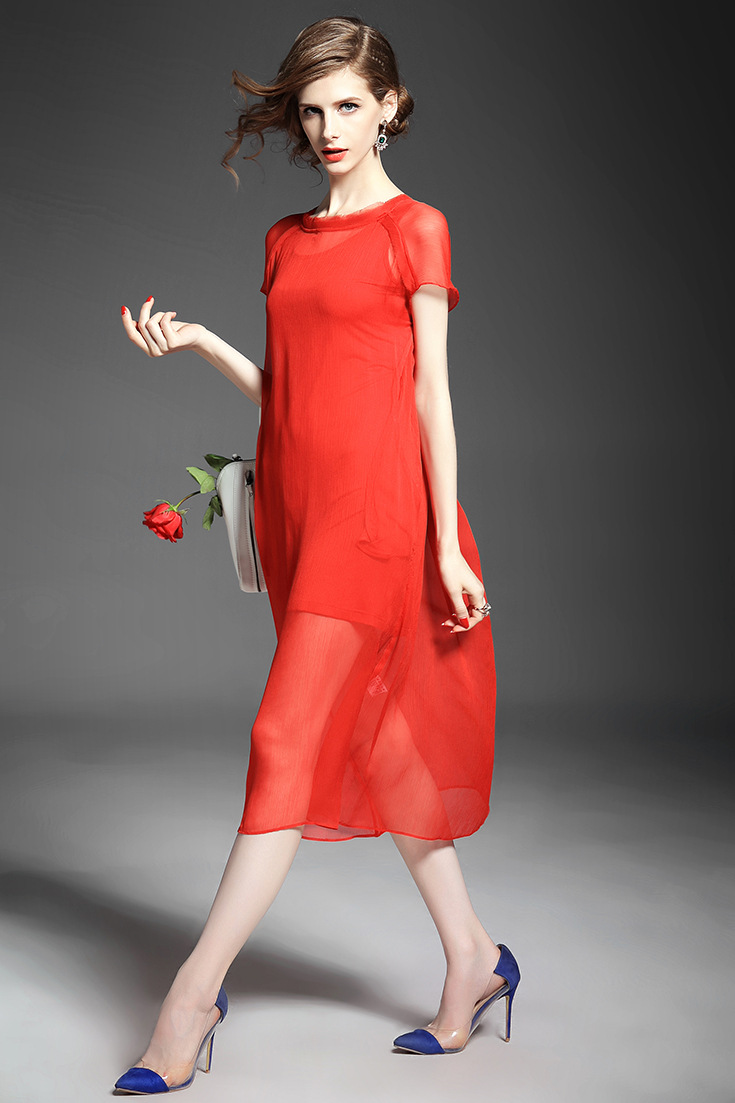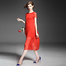 > 2015欧洲站夏季女装 时尚圆领短袖纯色气质飘逸大摆长裙修身显瘦