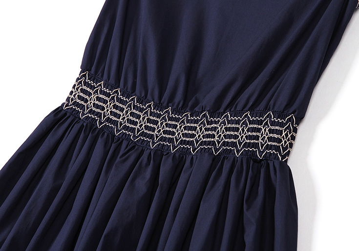 2015春夏新款女装连衣裙无袖V领绣花牛仔连衣裙百褶裙