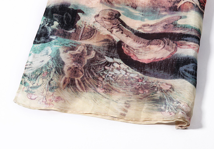 2015欧美高端女装夏季新款 圆领单排扣天使印花真丝麻修身一步裙