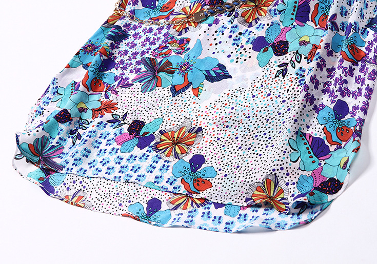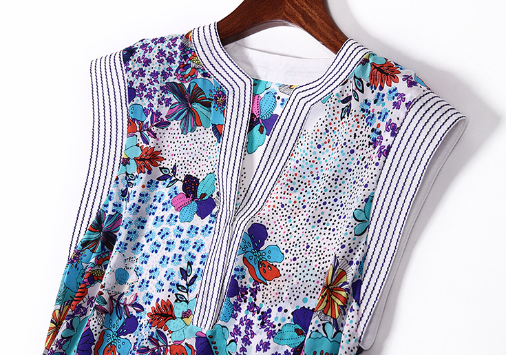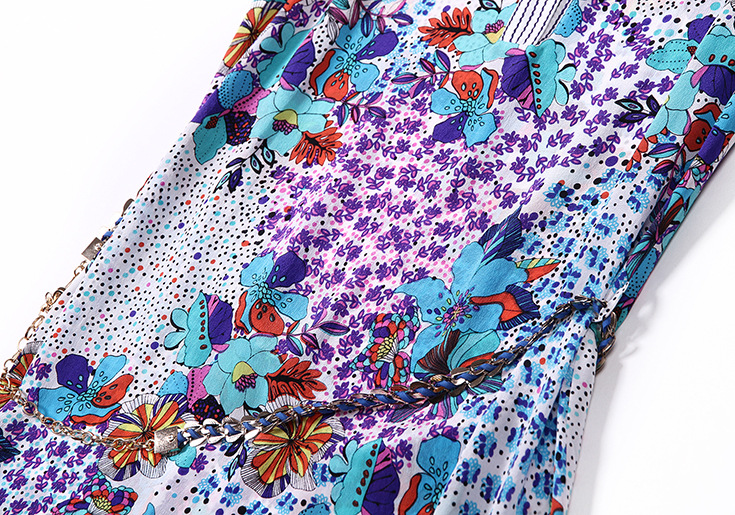 2015春夏季新款欧美风印花真丝连衣裙七分袖衬衣领时尚A字裙