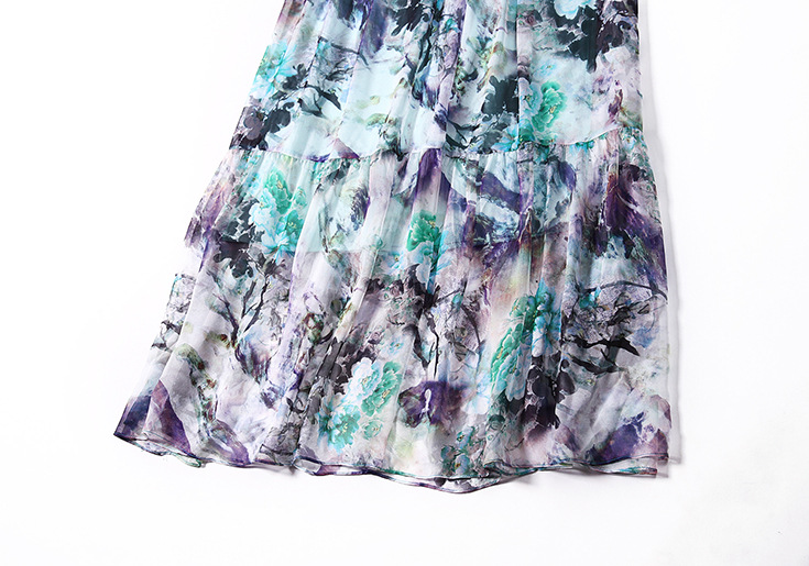 2015春夏新款欧美风印花高档桑蚕丝七分袖A字裙真丝连衣裙