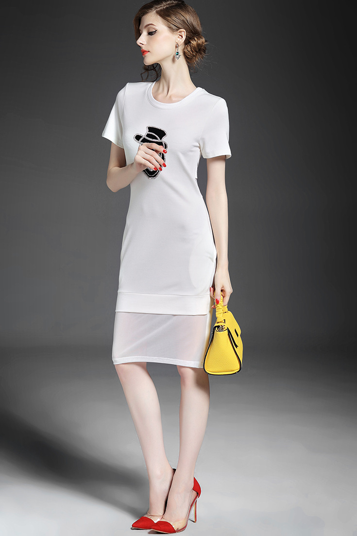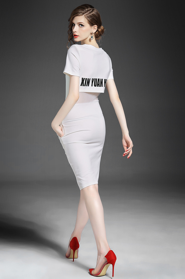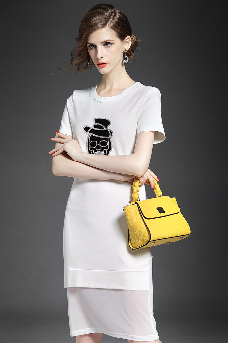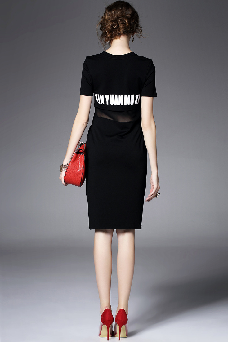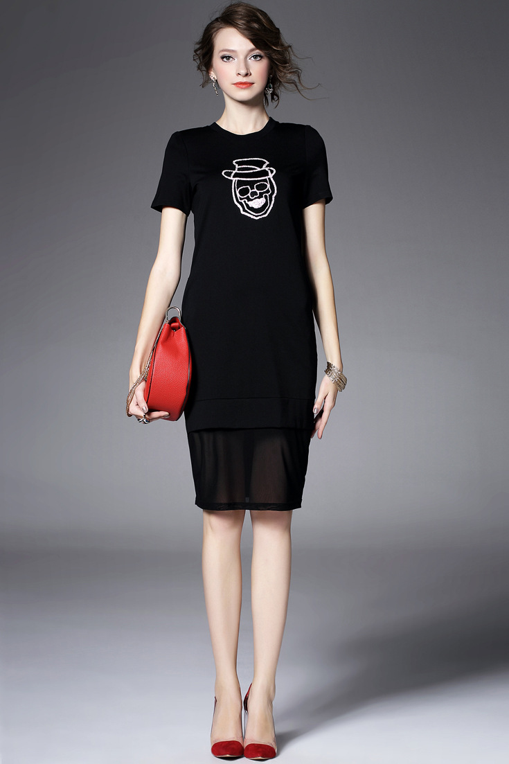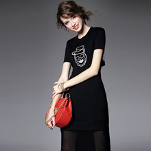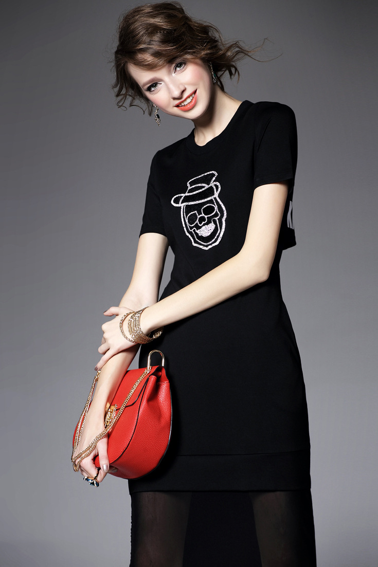 > 2015夏季新款欧美大牌钉钻骷髅头后背字母印花修身包臀中长连衣裙