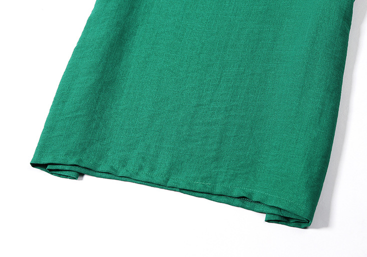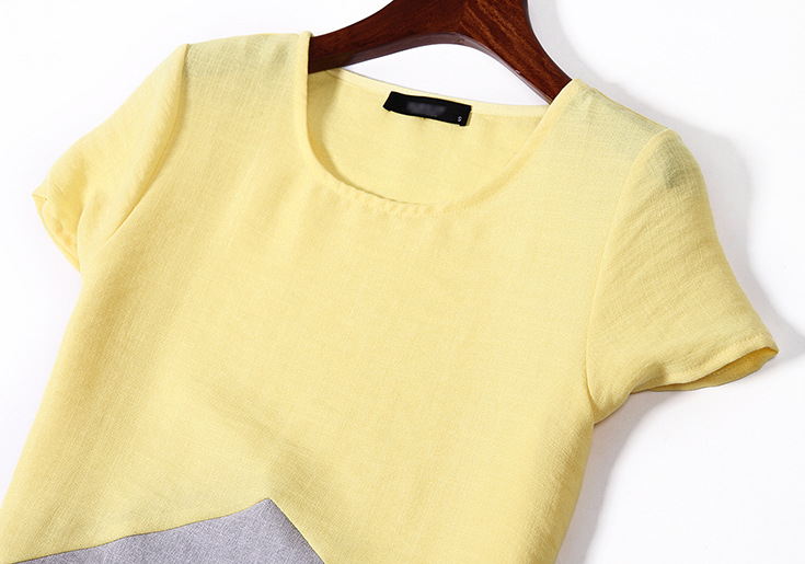 2015夏季新款 时尚圆领短袖棉麻撞色拼接宽松娃娃裙
