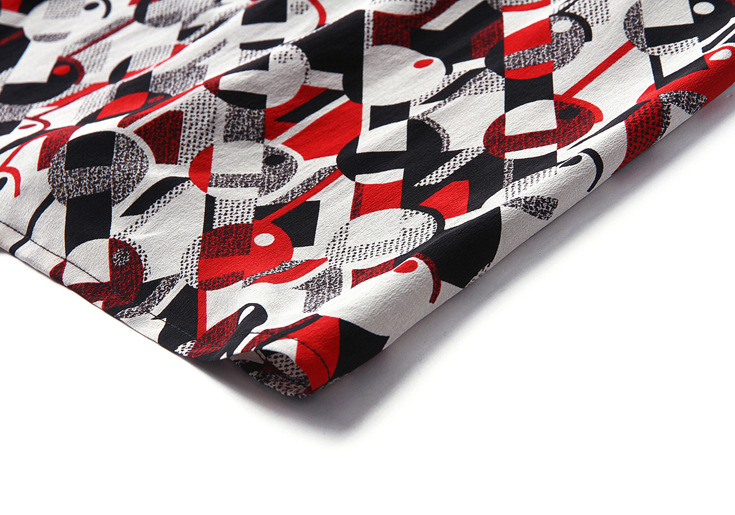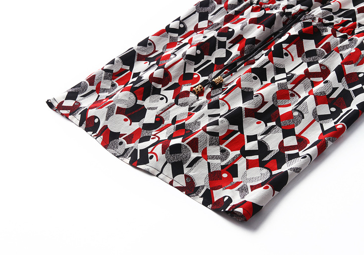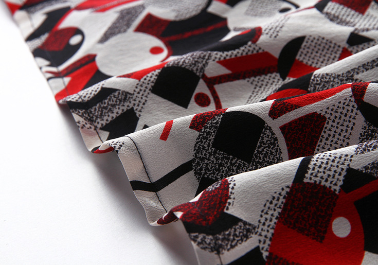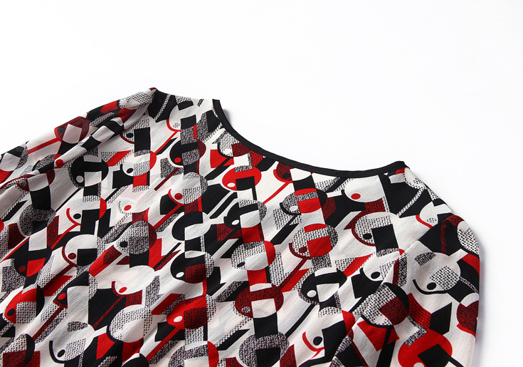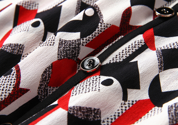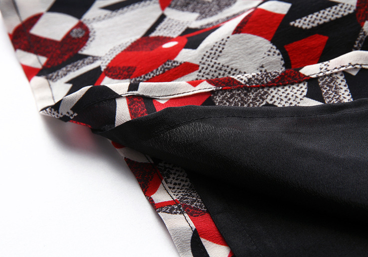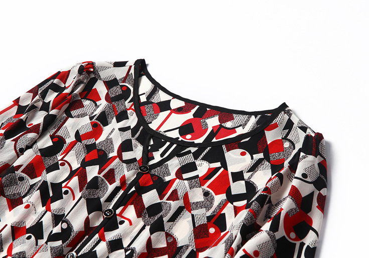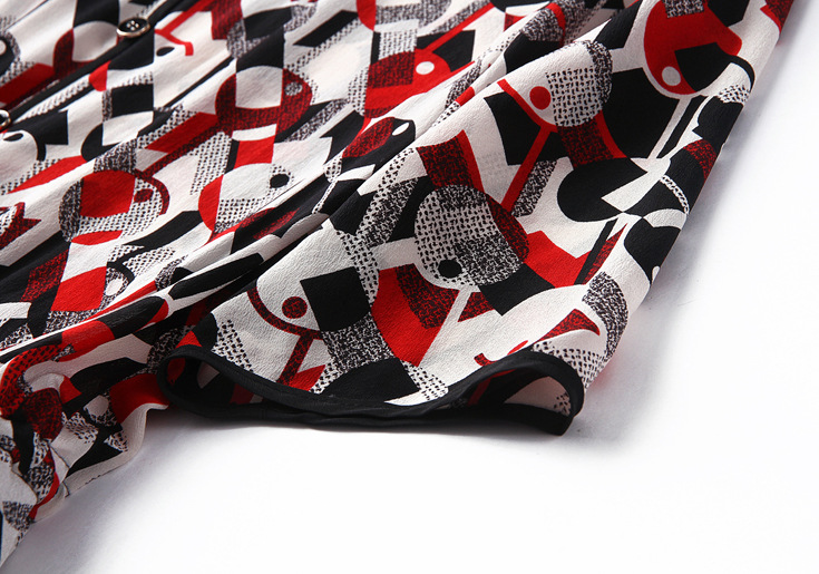 2015春夏季新款欧美风印花真丝连衣裙七分袖衬衣领时尚A字裙