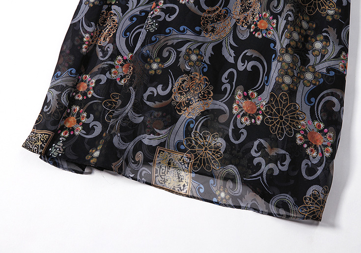 2015春夏新款欧美风印花高档桑蚕丝七分袖A字裙真丝连衣裙