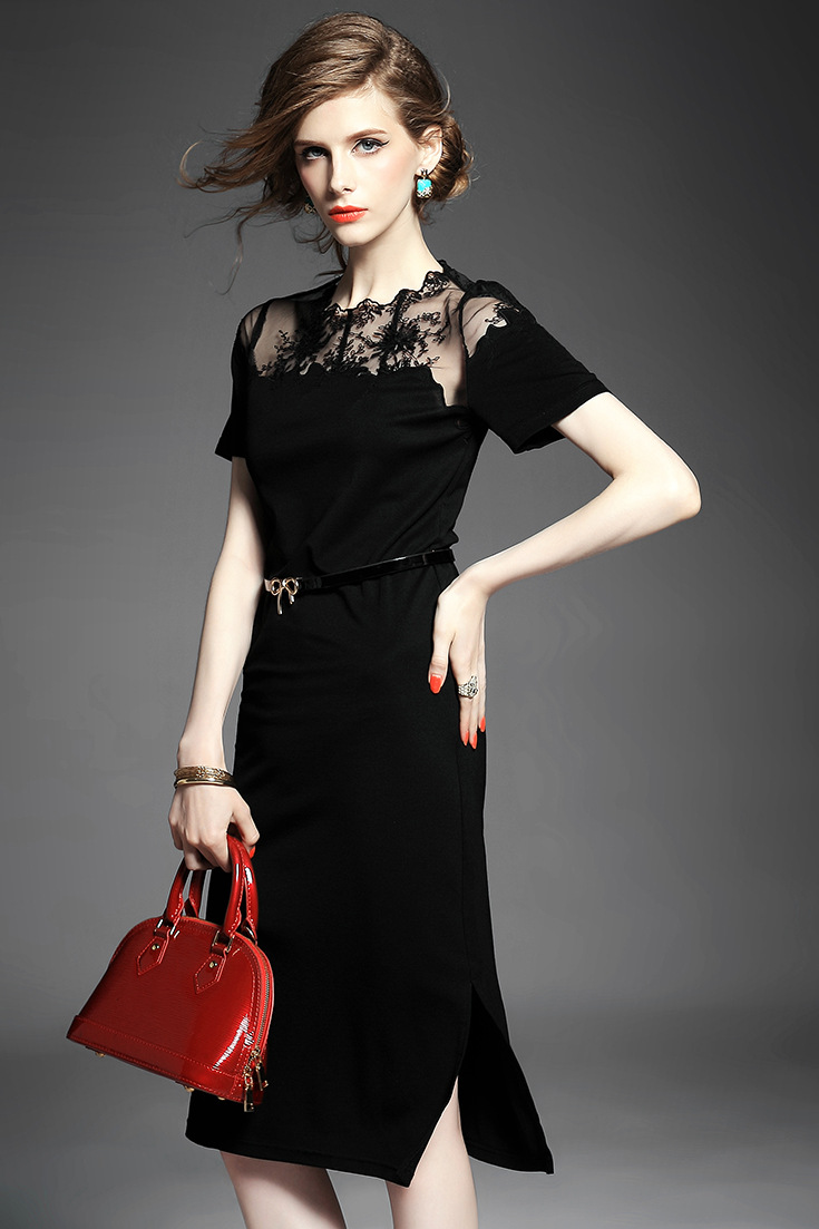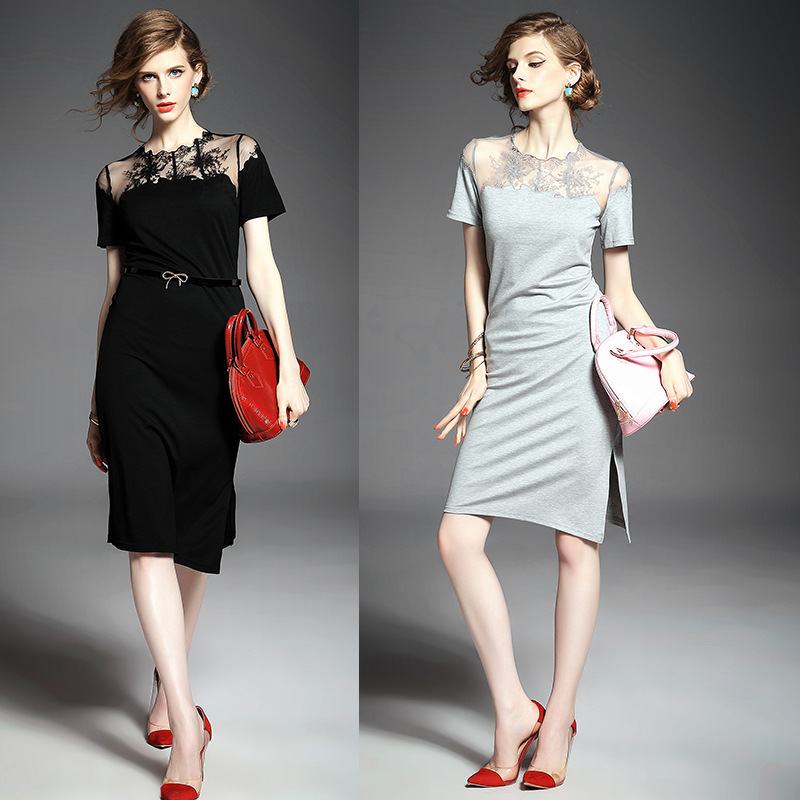 2015欧美风春装新款女装连衣裙显瘦气质镂空修身A字裙