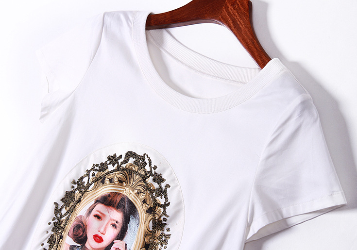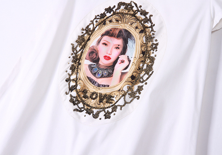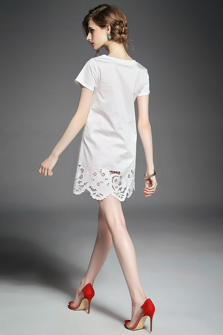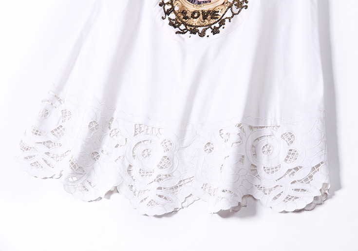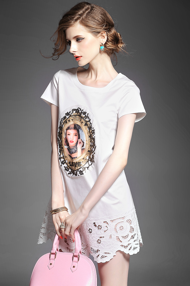 > 2015欧洲站新款连衣裙 头像印花拼贴镂空绣花波浪边纯棉短裙夏