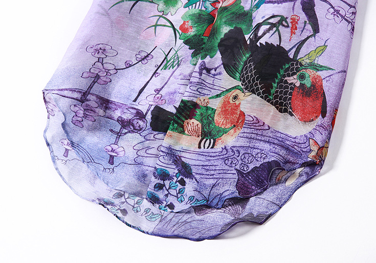 2015春夏新款欧美风印花高档桑蚕丝七分袖A字裙真丝连衣裙