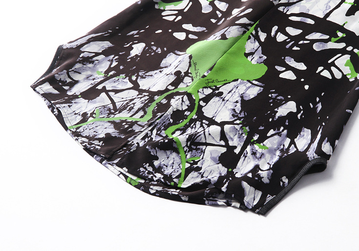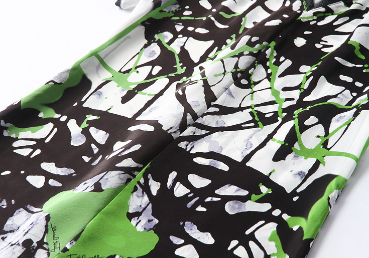 2015春夏新款欧美风印花高档桑蚕丝七分袖A字裙真丝连衣裙