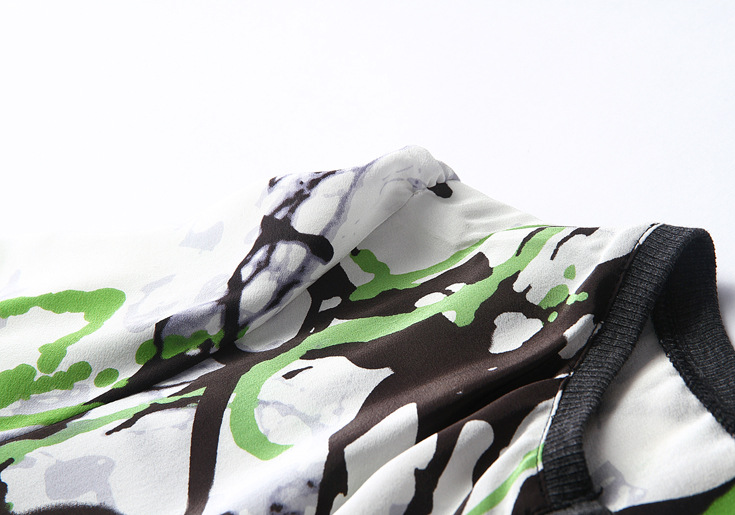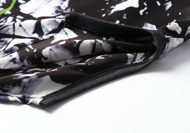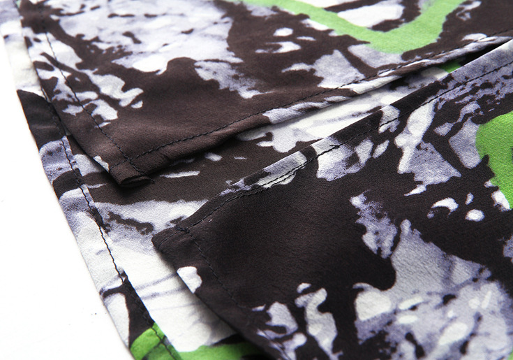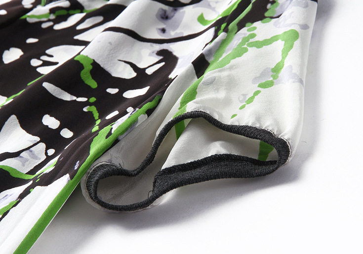 2015春夏季新款欧美风印花真丝连衣裙七分袖衬衣领时尚A字裙