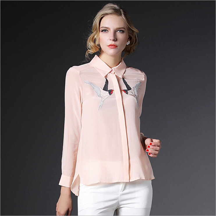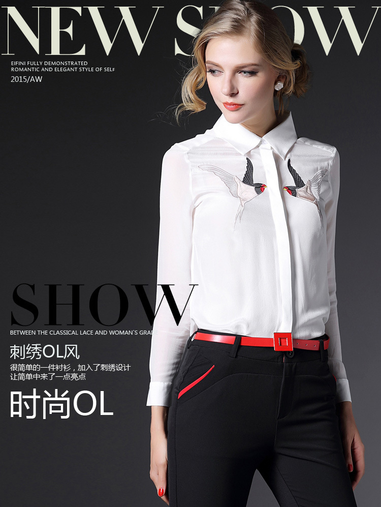 > 2015欧美风高端春装真丝衬衫女长袖欧洲站桑蚕丝上衣衬衣