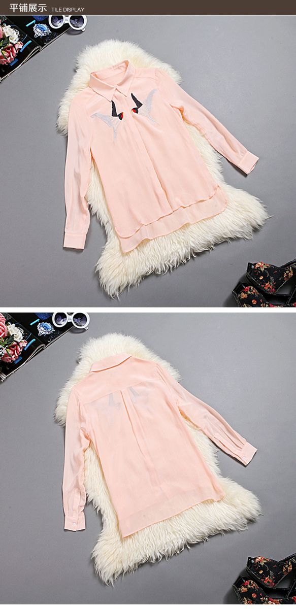 2015欧美大风中长款真丝衬衫女长袖桑蚕丝上衣娃娃领衬衣