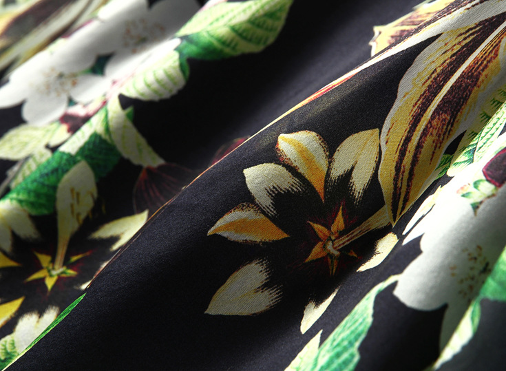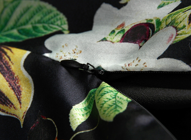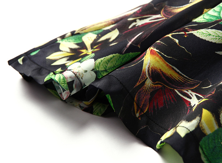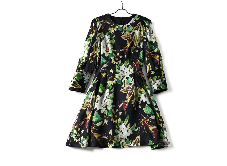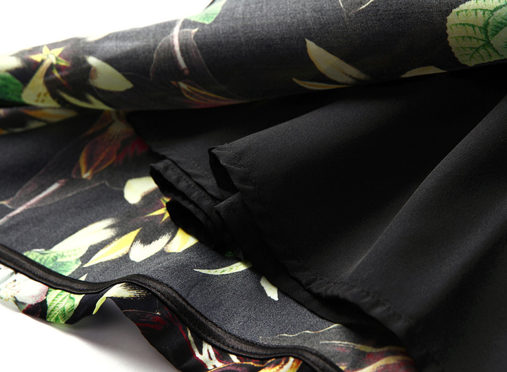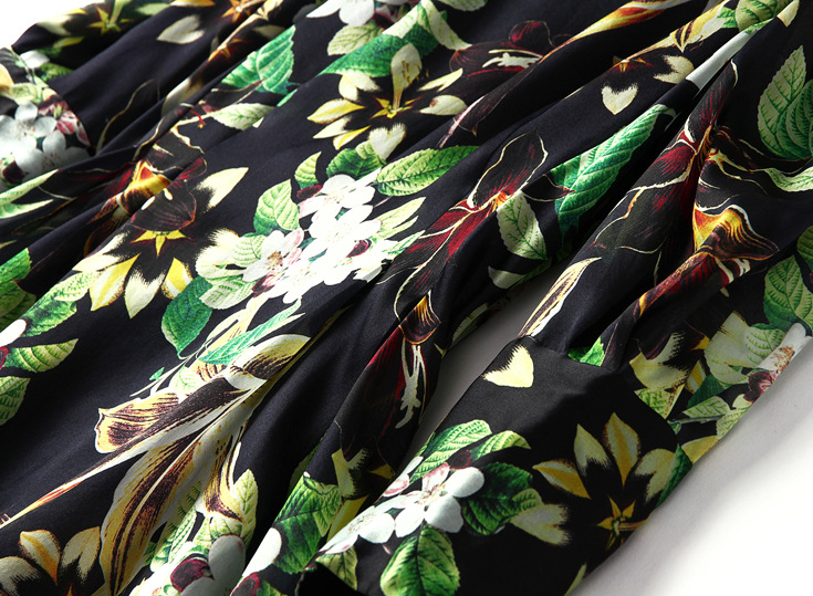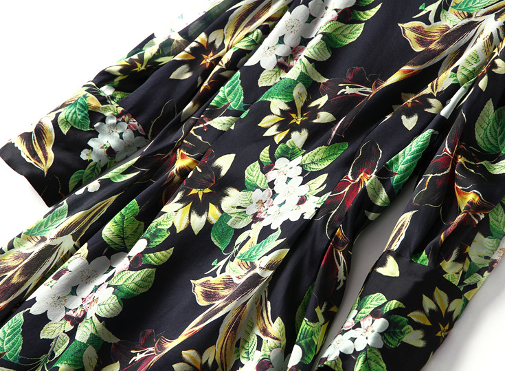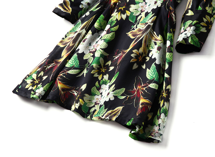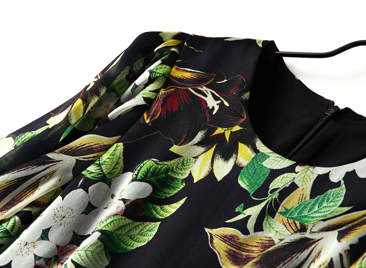 2015春夏新款欧美风印花高档桑蚕丝七分袖A字裙真丝连衣裙