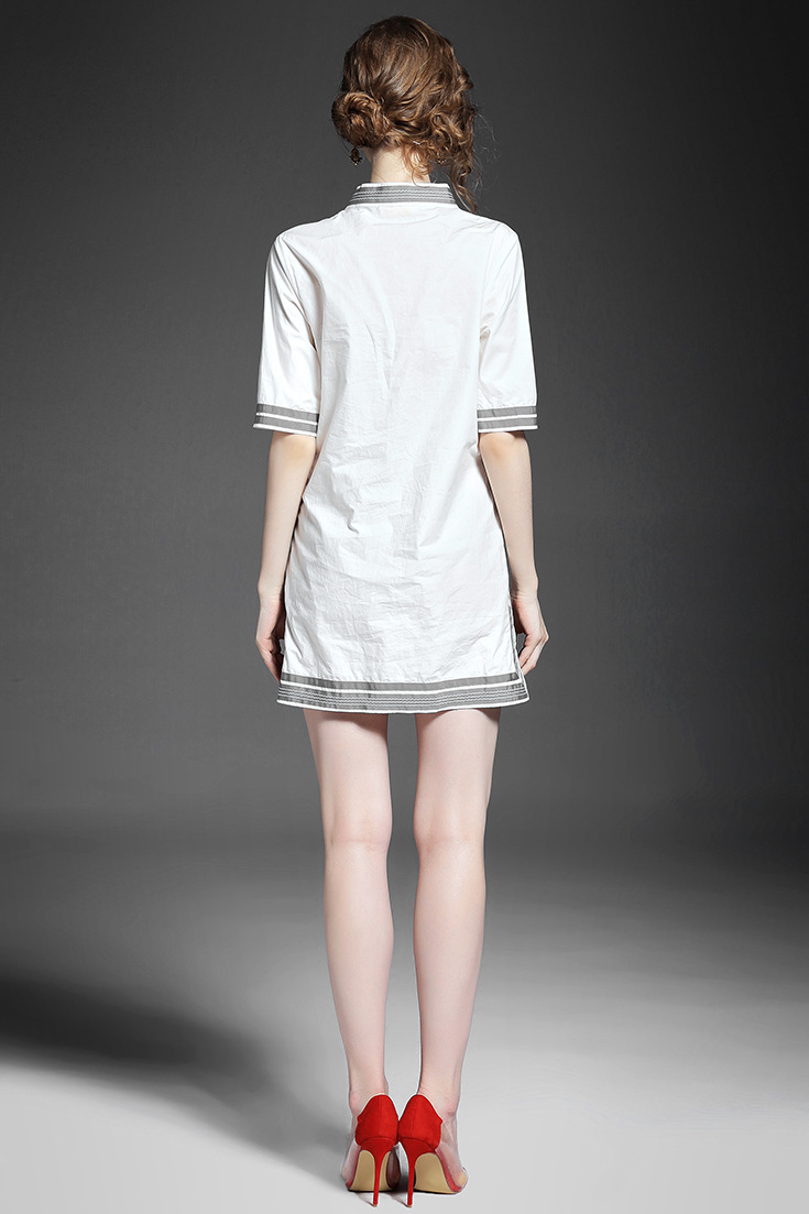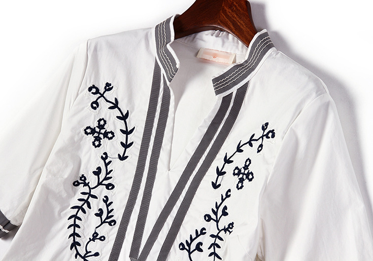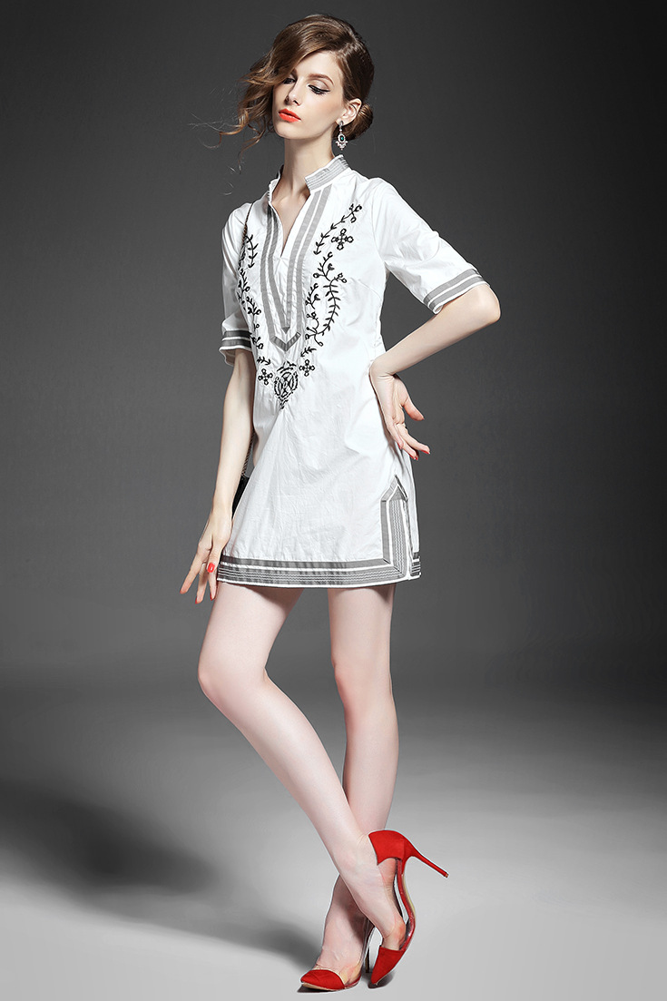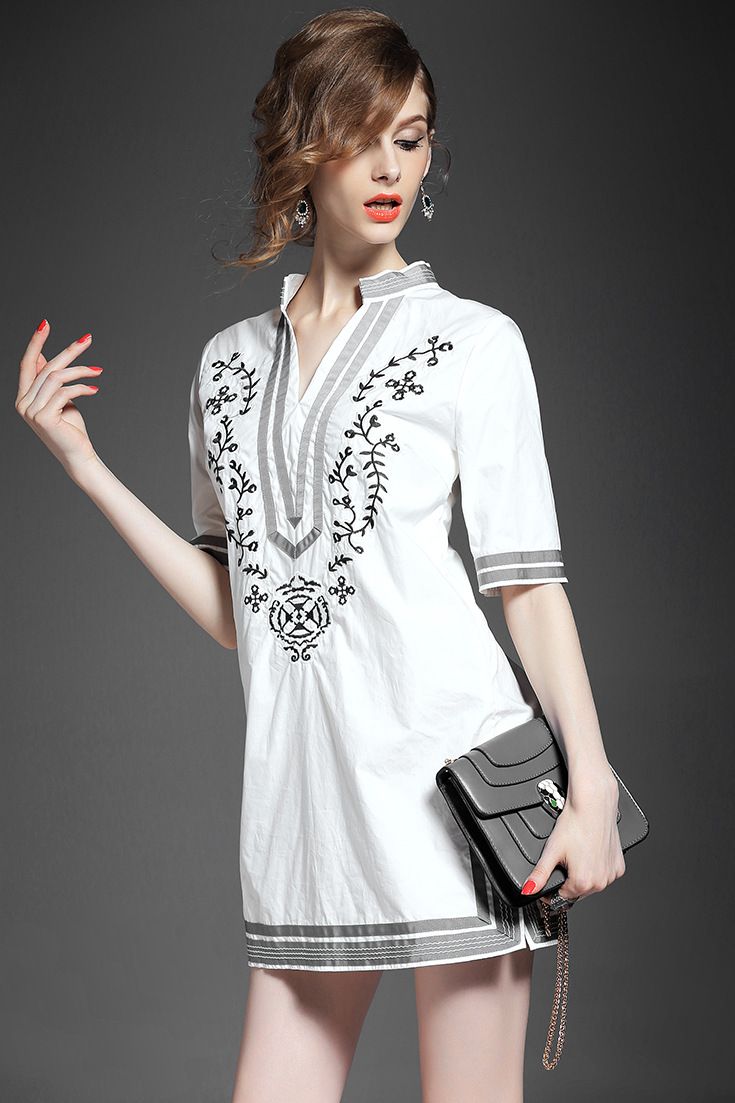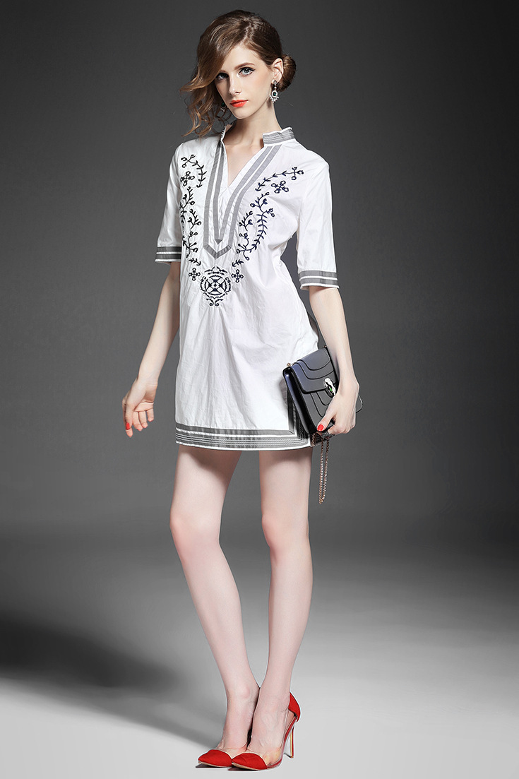 2015夏季新款女装 欧美大牌时尚V领重工绣花织带拼接短裙连衣裙