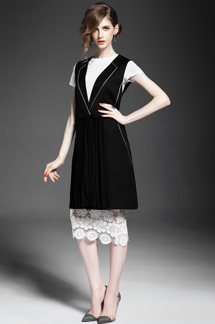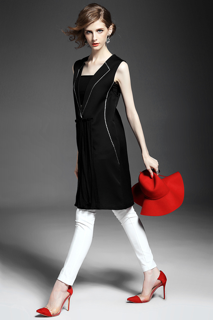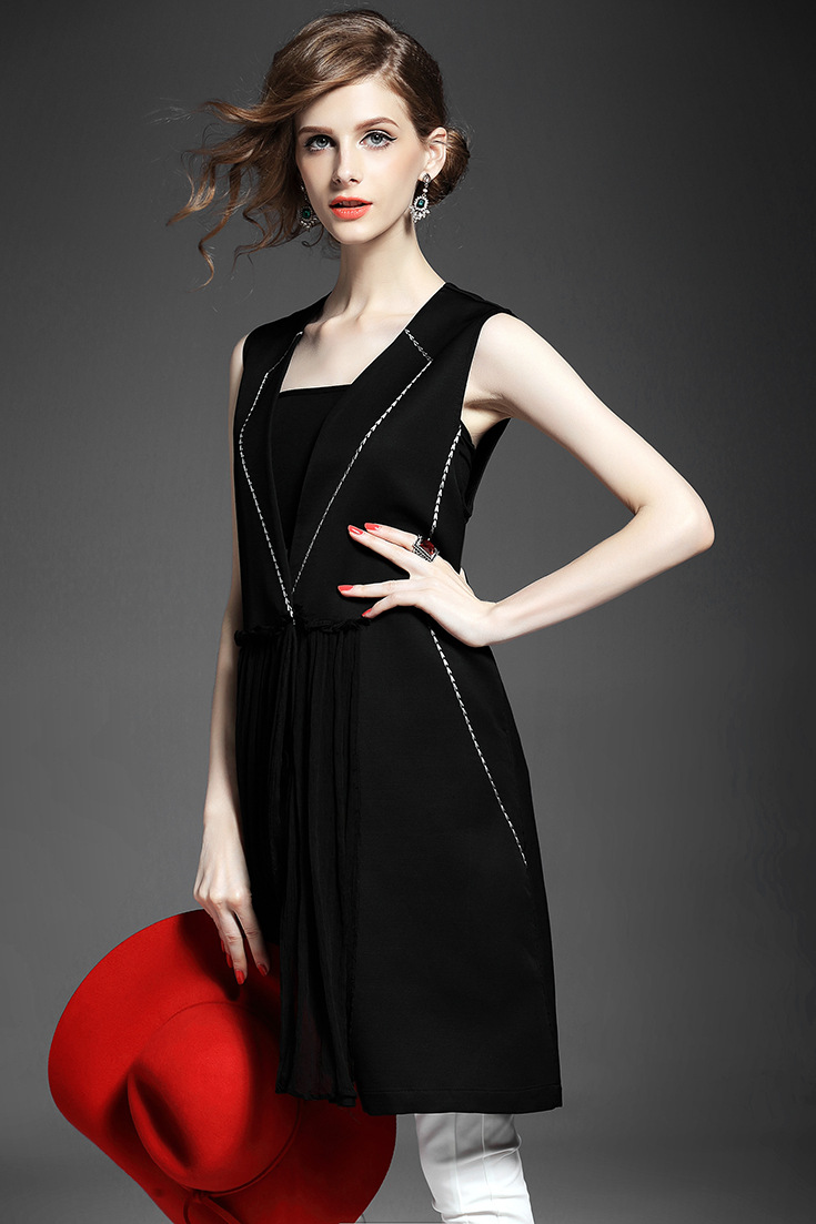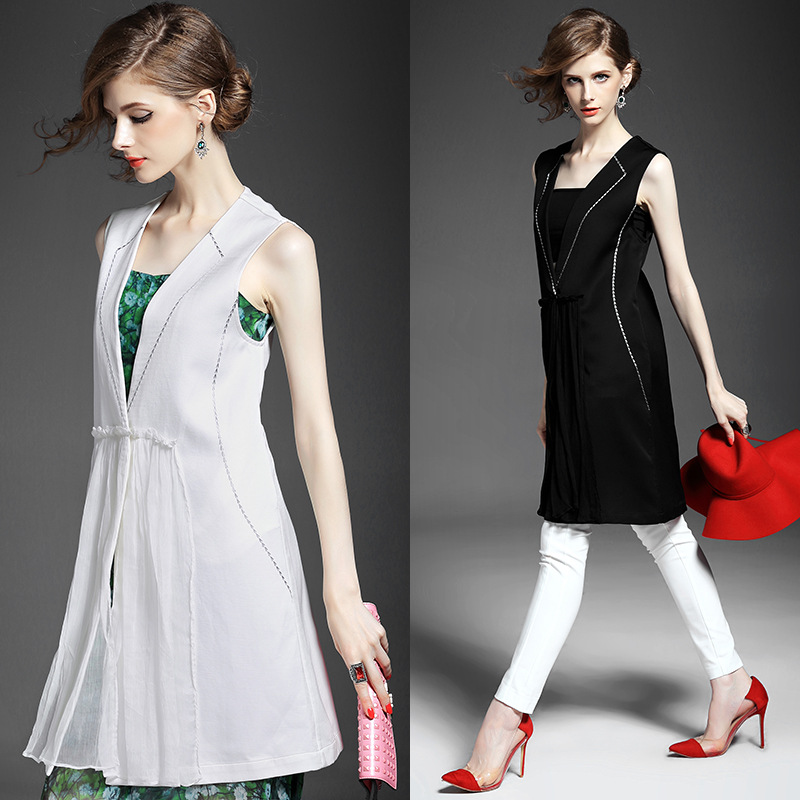 2015夏季女装新款 时尚无袖透气纯色拼接百褶立体装饰外套