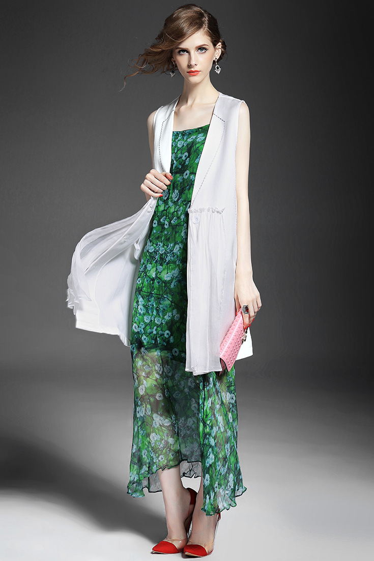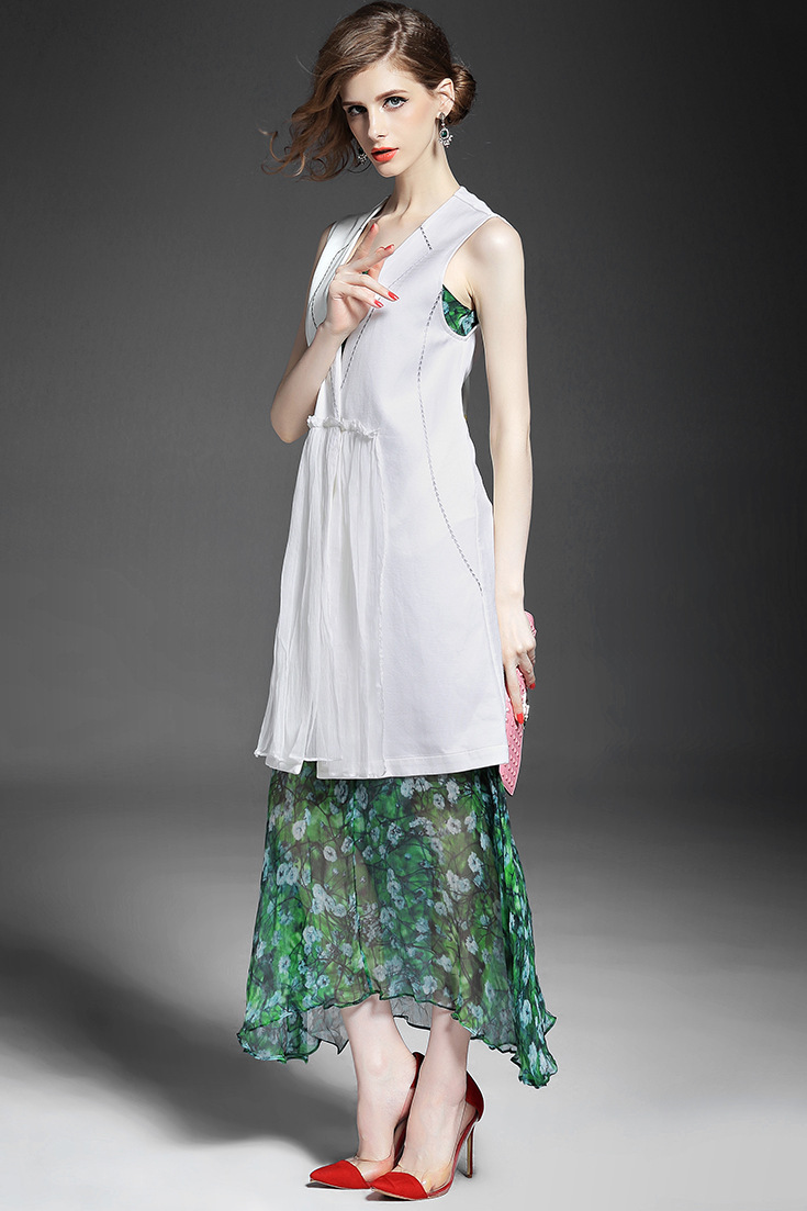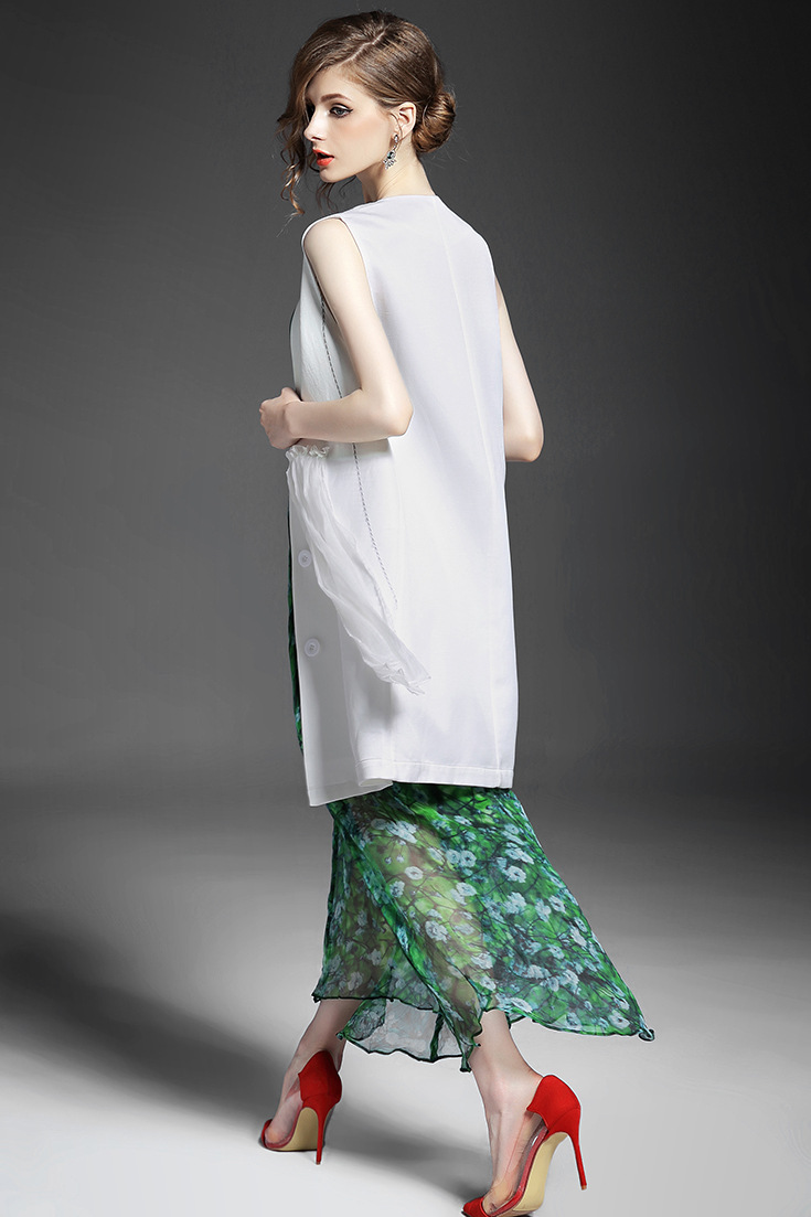 > 2015夏季女装新款 时尚无袖透气纯色拼接百褶立体装饰外套
