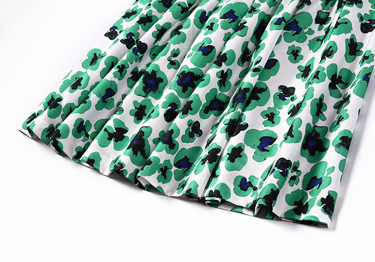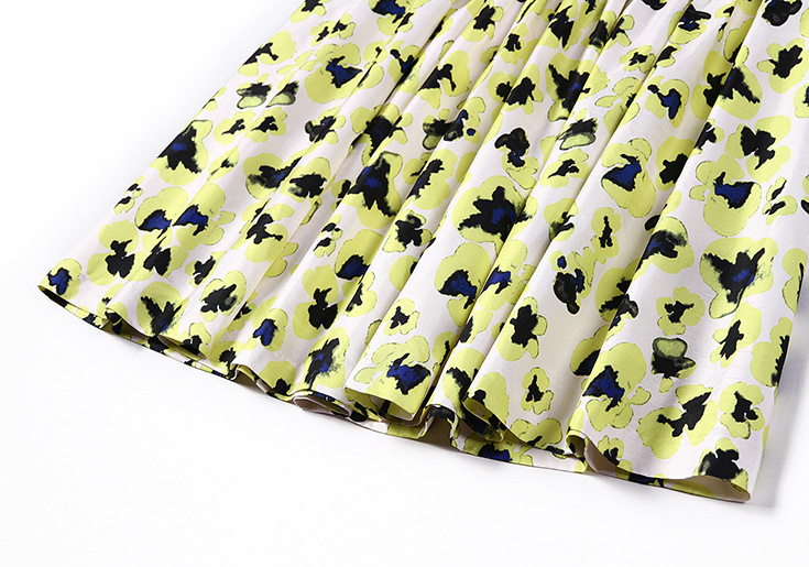 2015春夏新款欧美风印花高档桑蚕丝七分袖A字裙真丝连衣裙