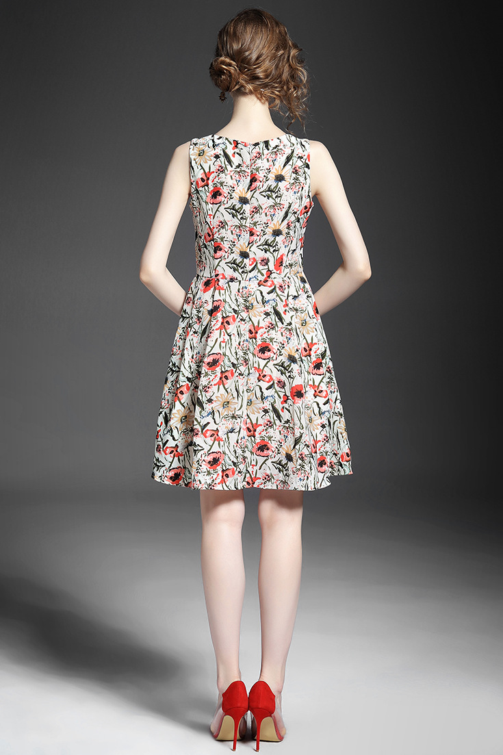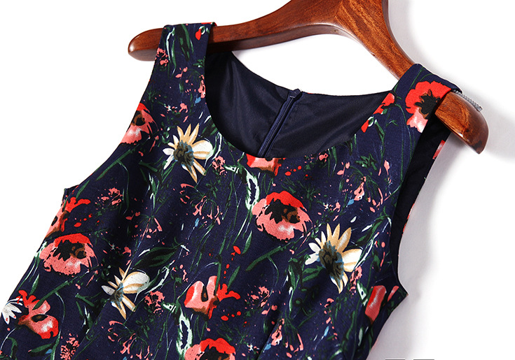2015欧美圆领亚麻印花修身大摆a字裙+纯色雪纺披肩两件套夏新款