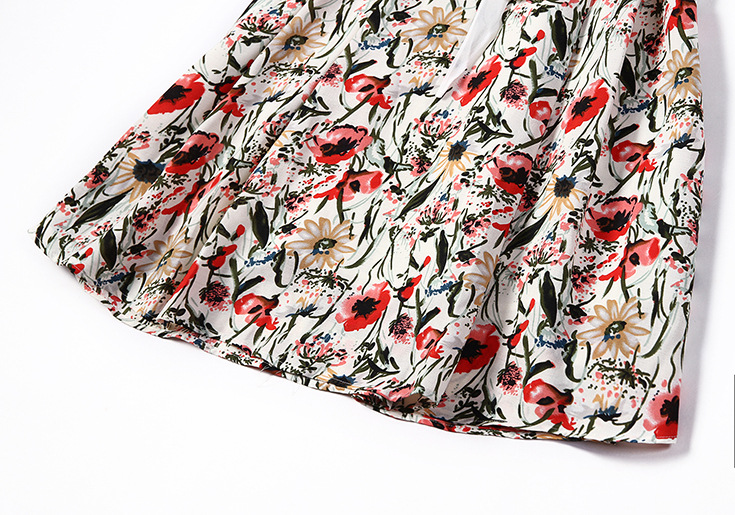 2015春夏季新款欧美风印花真丝连衣裙七分袖衬衣领时尚A字裙