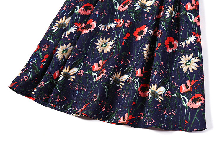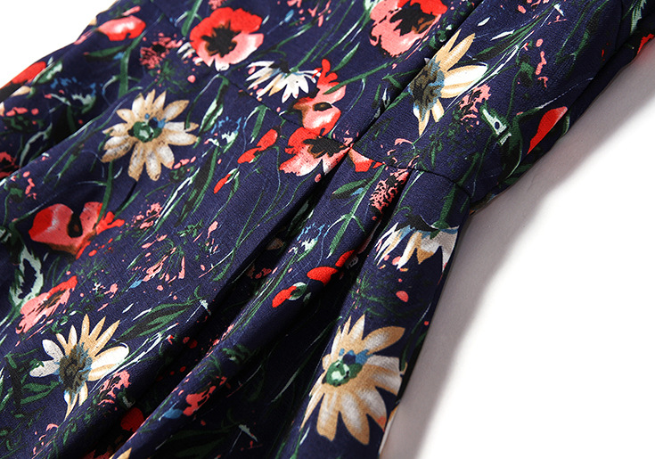 2015春夏新款欧美风印花高档桑蚕丝七分袖A字裙真丝连衣裙