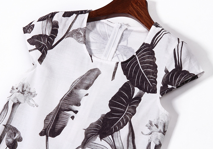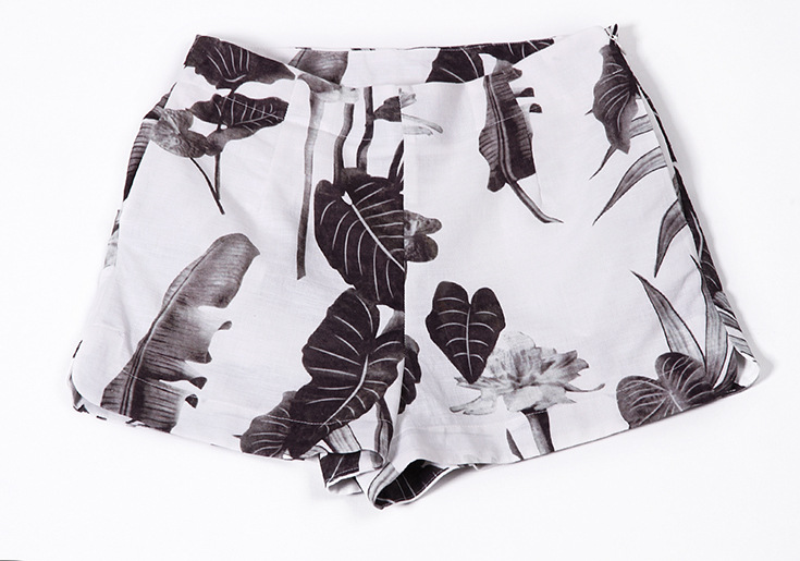套装2015圆领包肩袖亚麻印花上衣+修身直筒短裤两件套夏