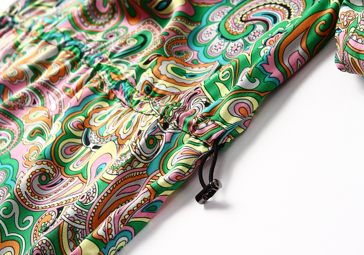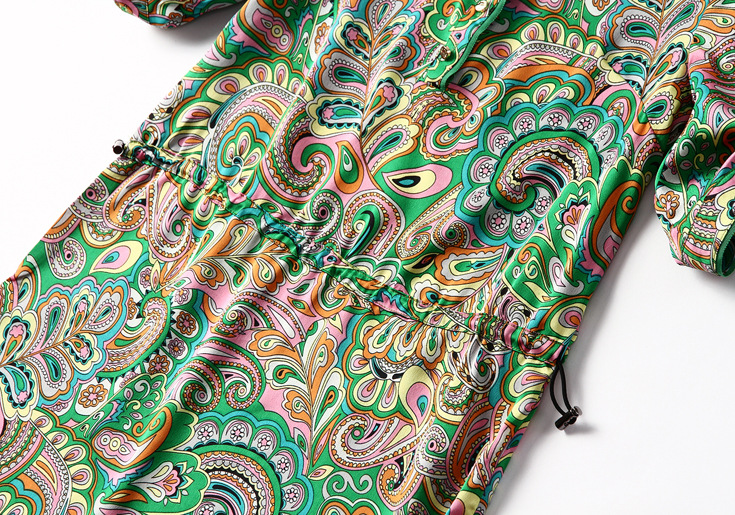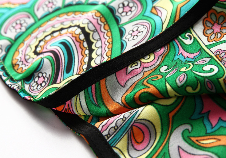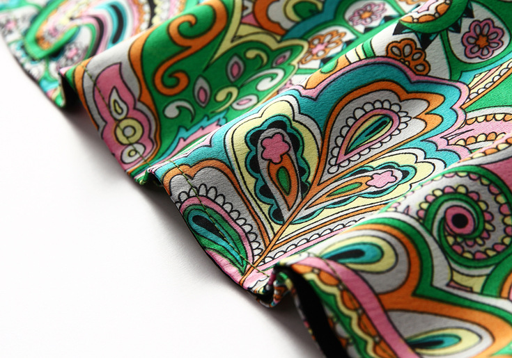 2015春夏新款欧美风印花高档桑蚕丝七分袖A字裙真丝连衣裙