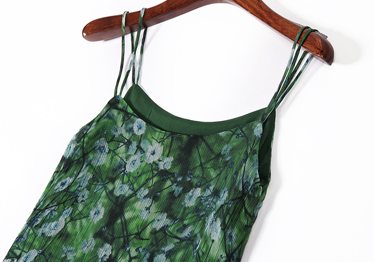2015夏季女装新款 欧美大牌碎花不规则大摆真丝长裙吊带沙滩裙