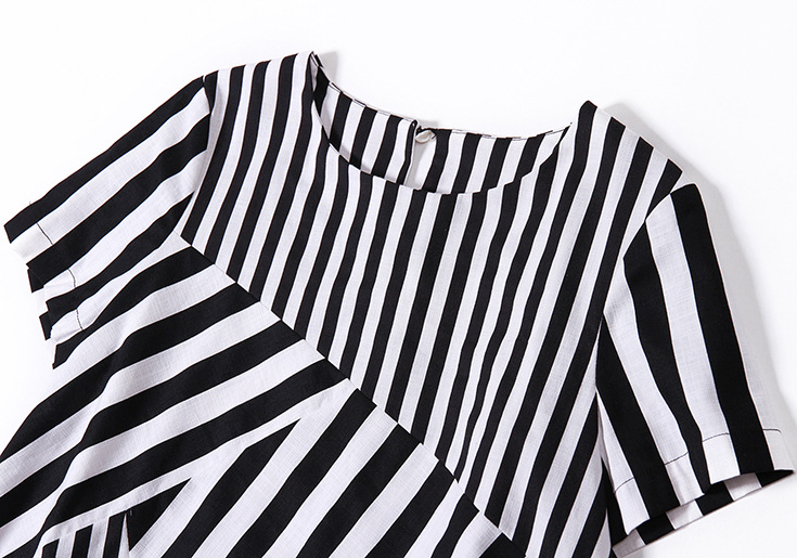 2015欧美女装不规则条纹拼接廓形短袖T恤+修身显瘦阔腿短裤套装夏