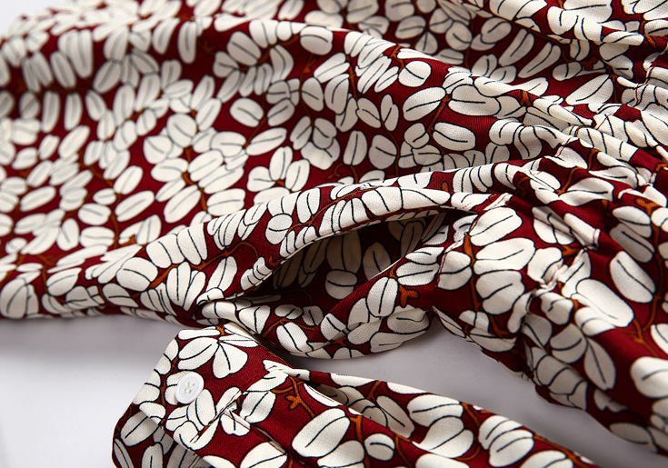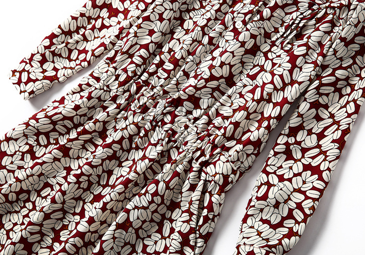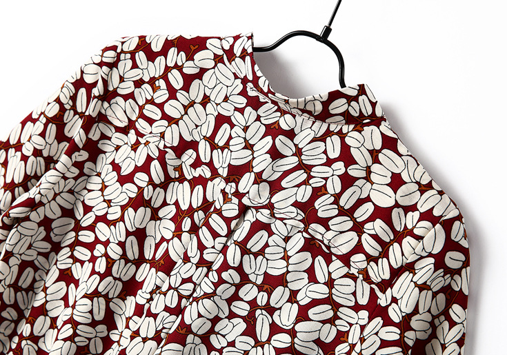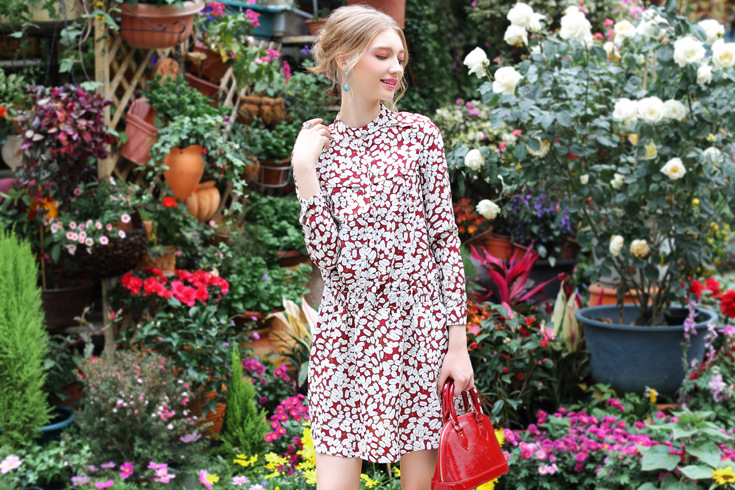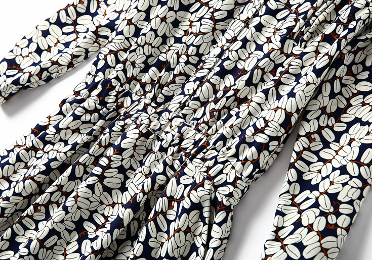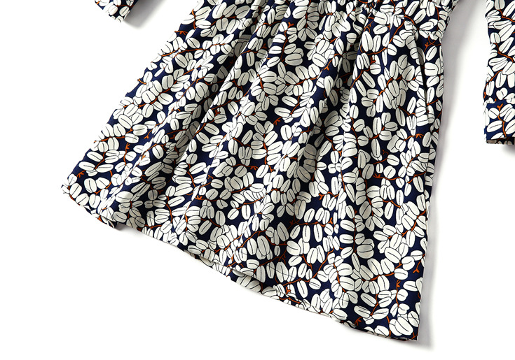 > 2015春季女装新款 小立领长袖叶片印花长袖弹力收腰连衣裙