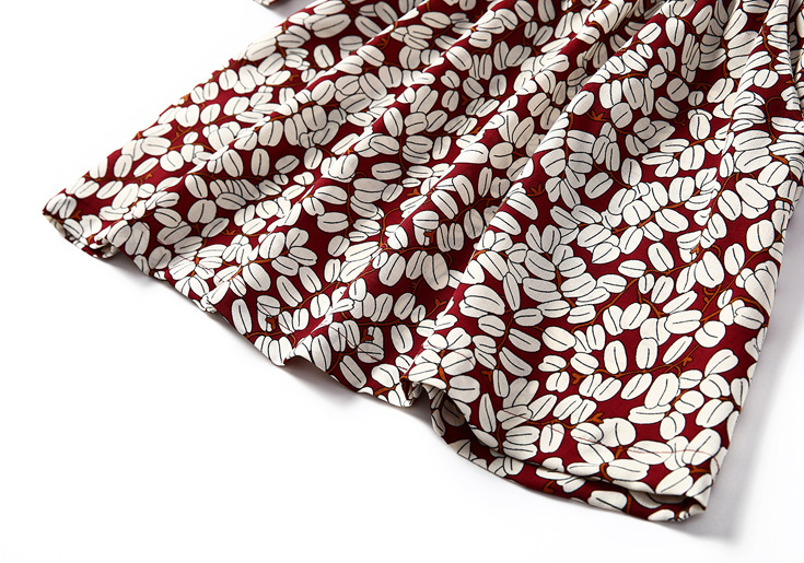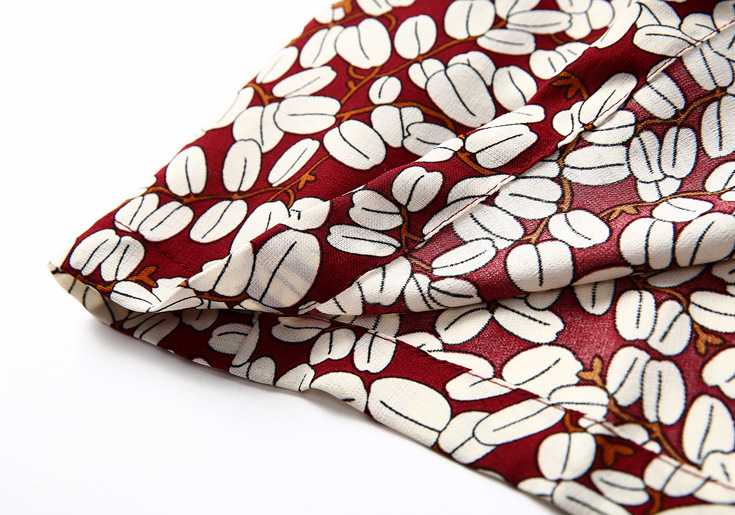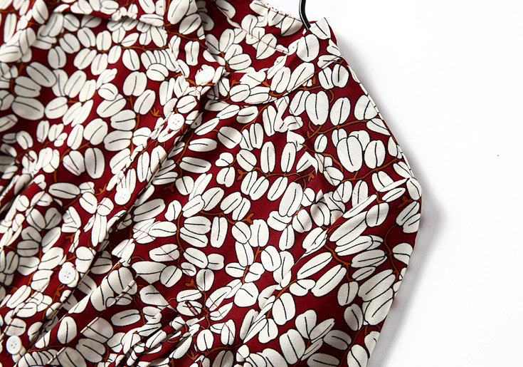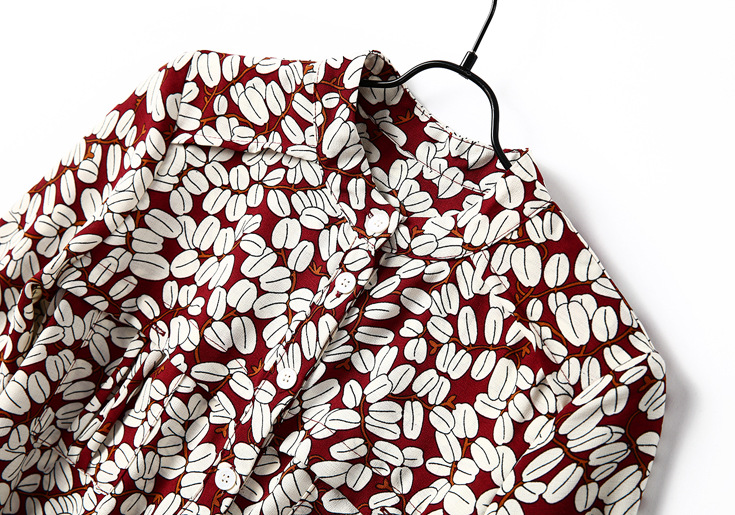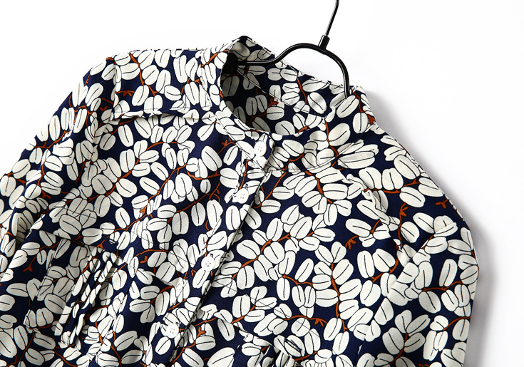 2015春夏季新款欧美风印花真丝连衣裙七分袖衬衣领时尚A字裙