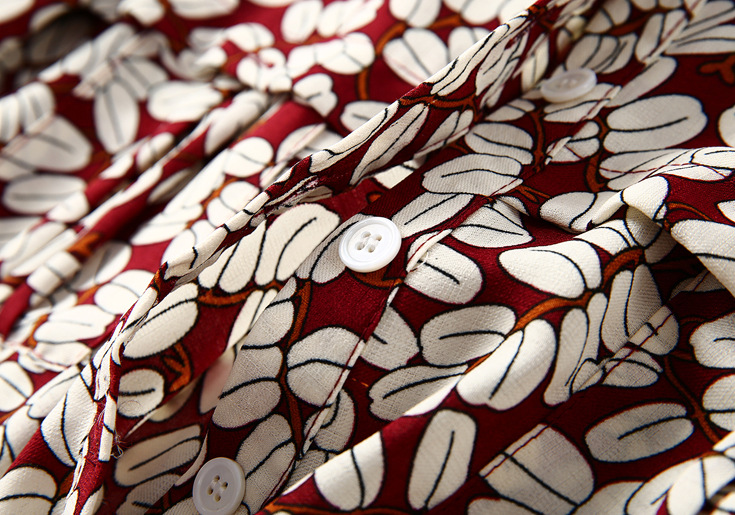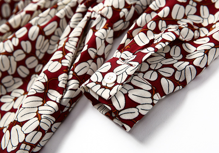 2015春季女装新款 小立领长袖叶片印花长袖弹力收腰连衣裙