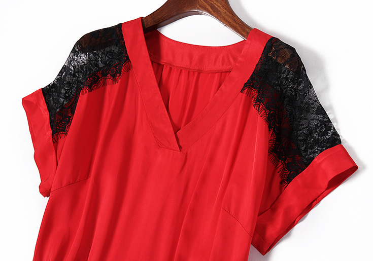2015夏季新款女装 气质V领蕾丝拼接金属扣收腰修身连衣裙