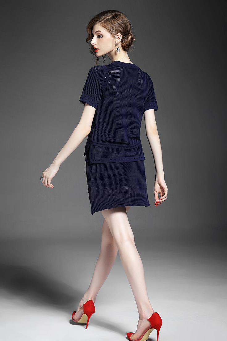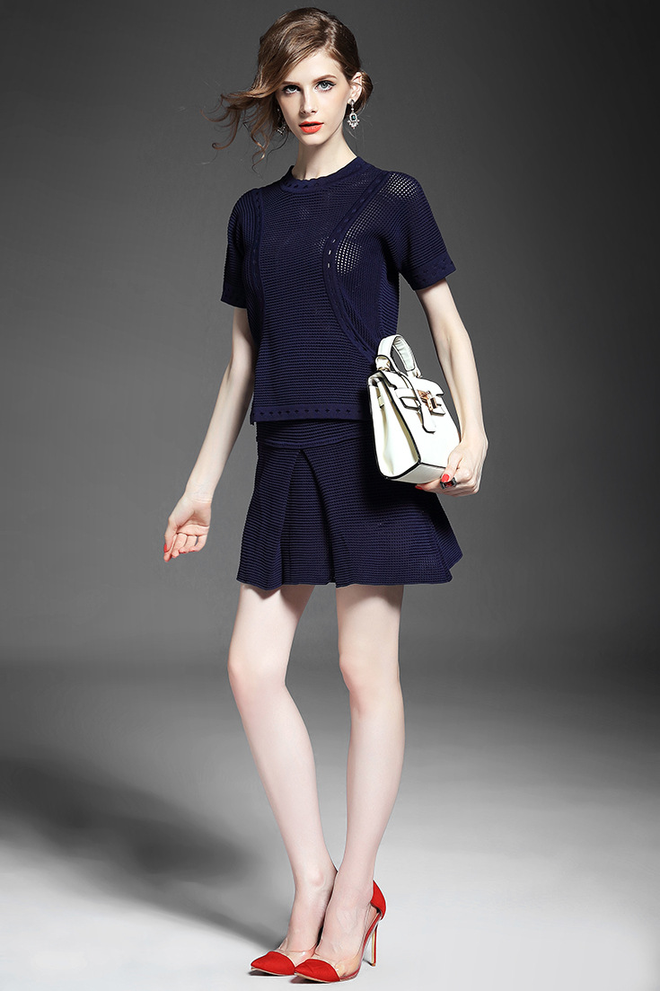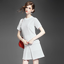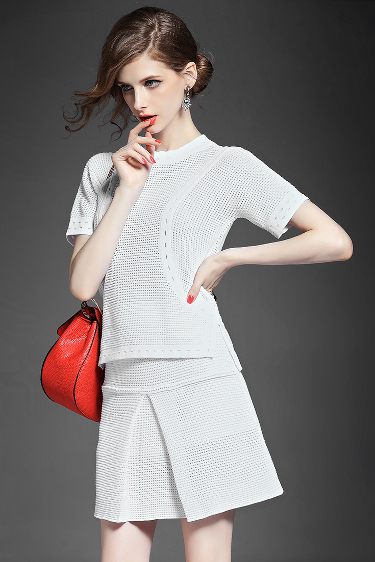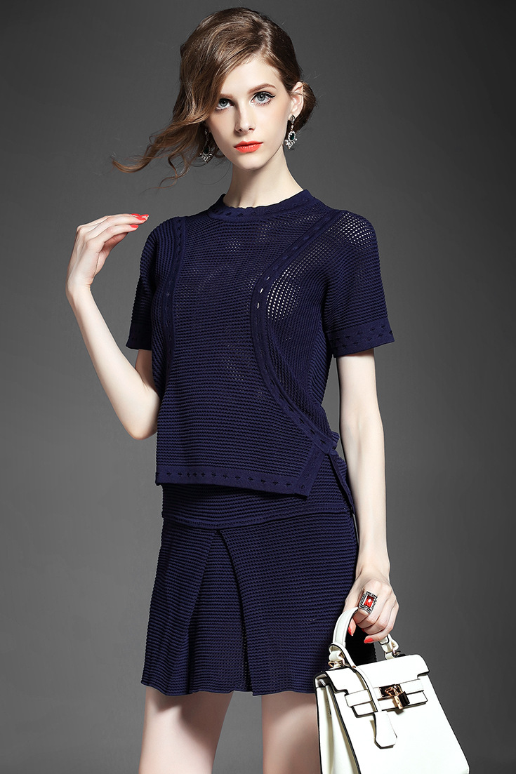> 2015夏 欧洲高端纯色针织拼接不规则短上衣+修身包臀半裙套装女