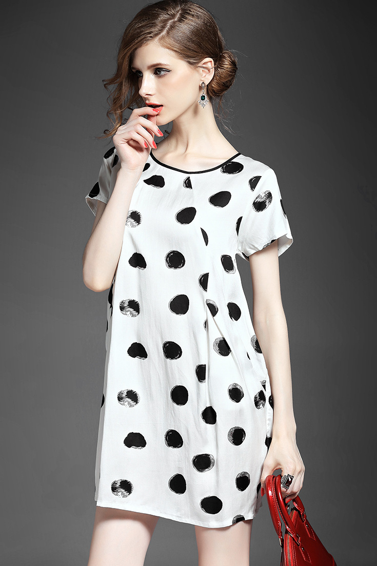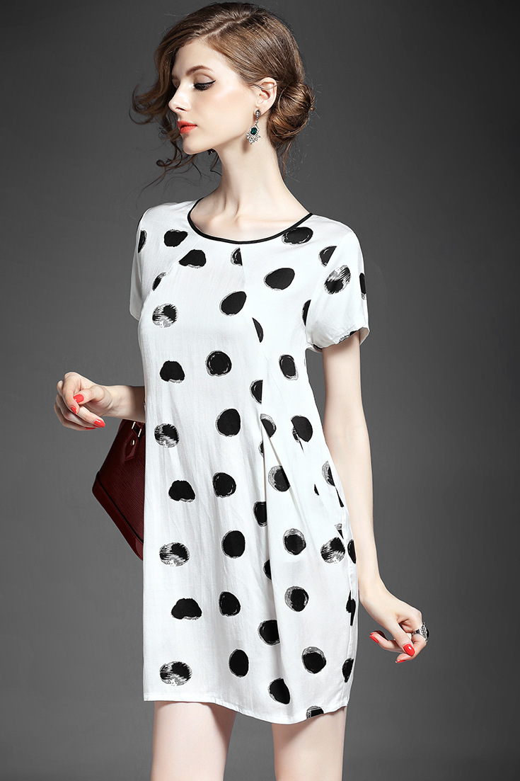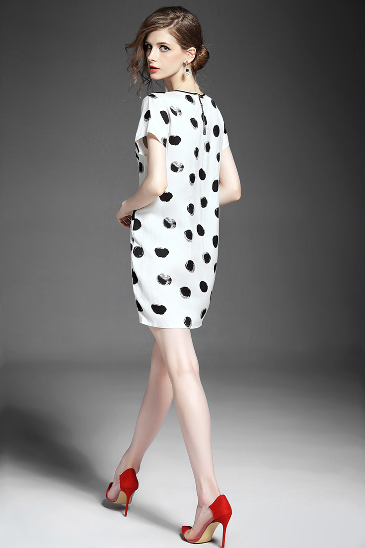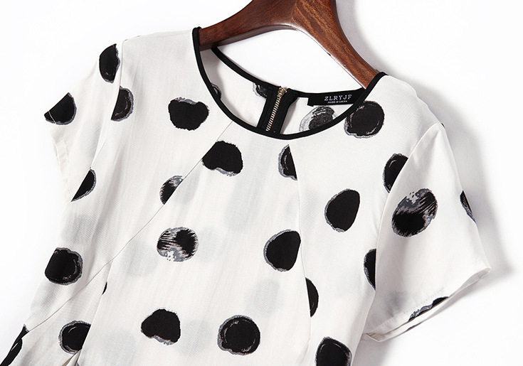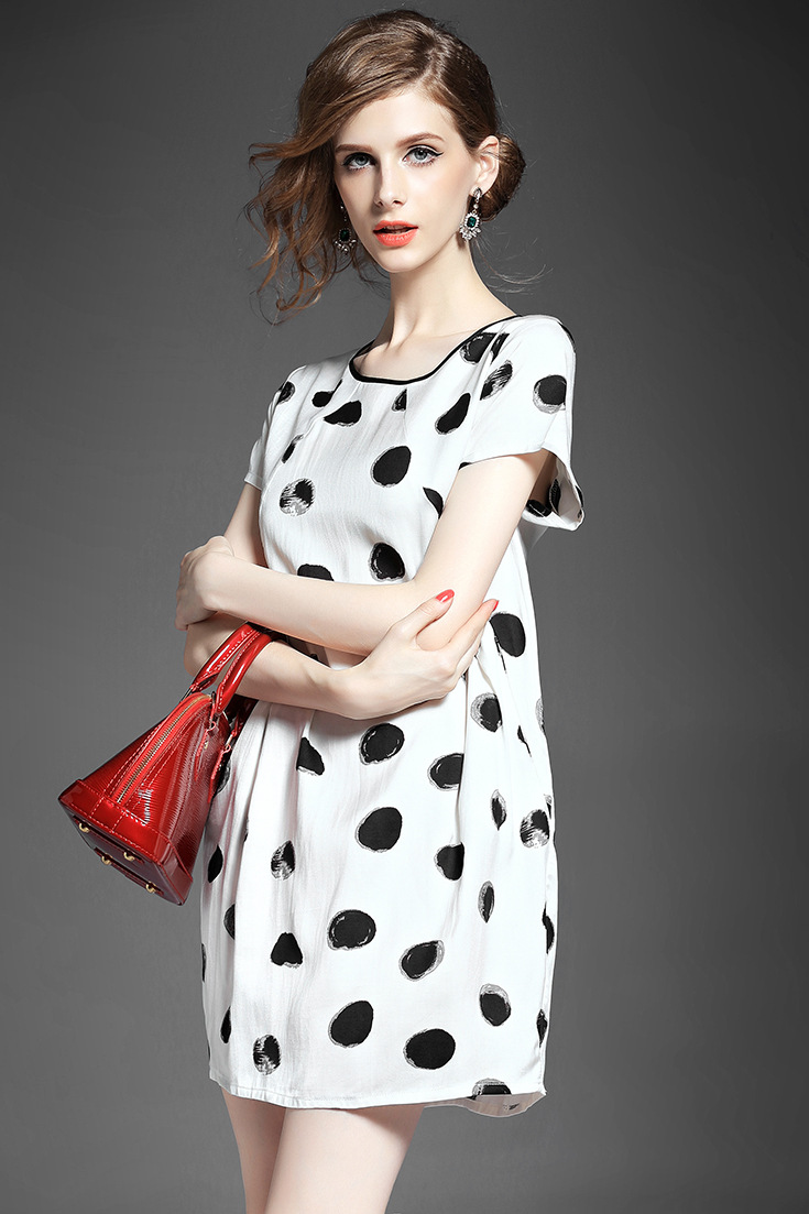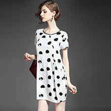 2015夏季女装 淑女气质圆领时尚圆点喷墨印染宽松娃娃裙