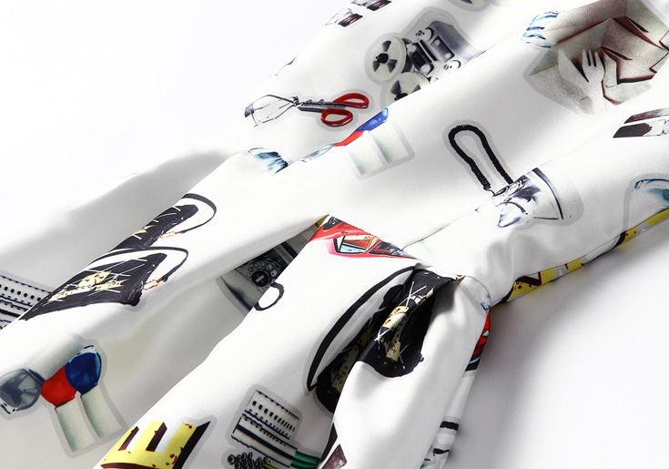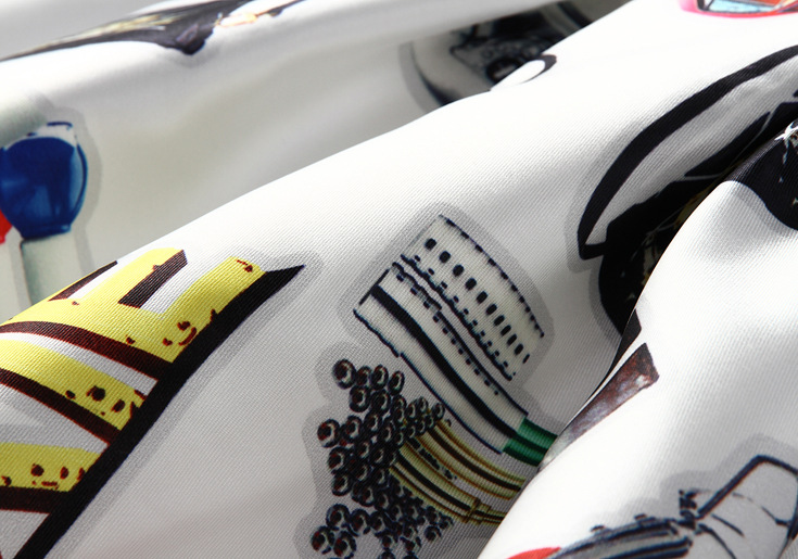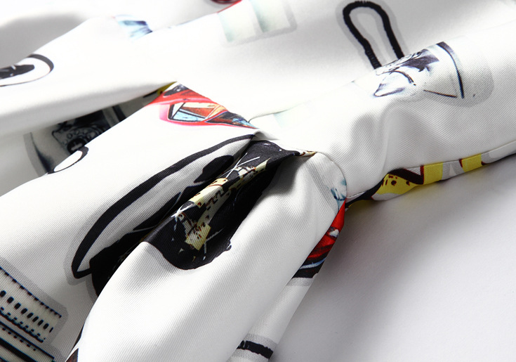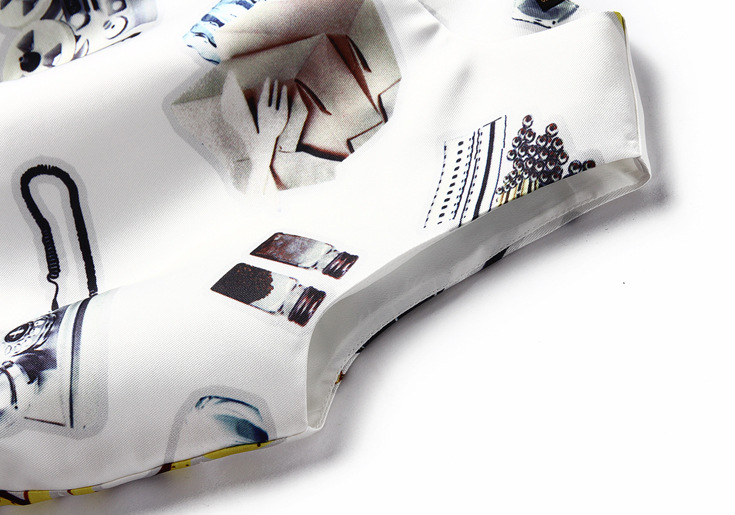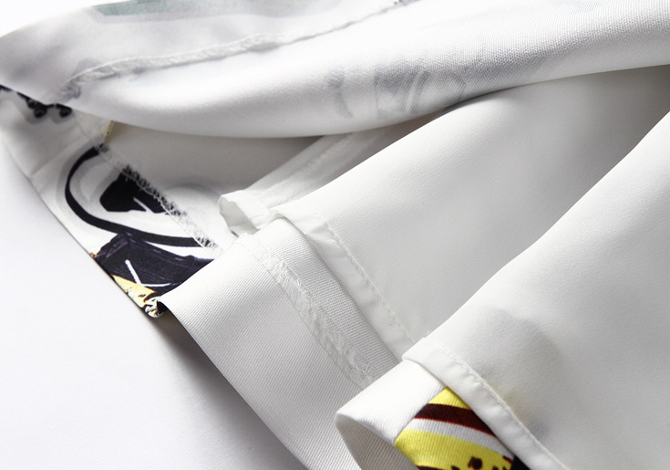 2015春夏季新款欧美风印花真丝连衣裙七分袖衬衣领时尚A字裙