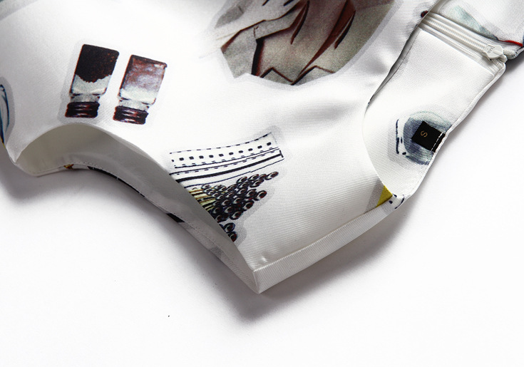 2015春夏新款欧美风印花高档桑蚕丝七分袖A字裙真丝连衣裙