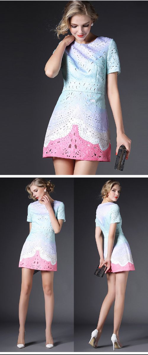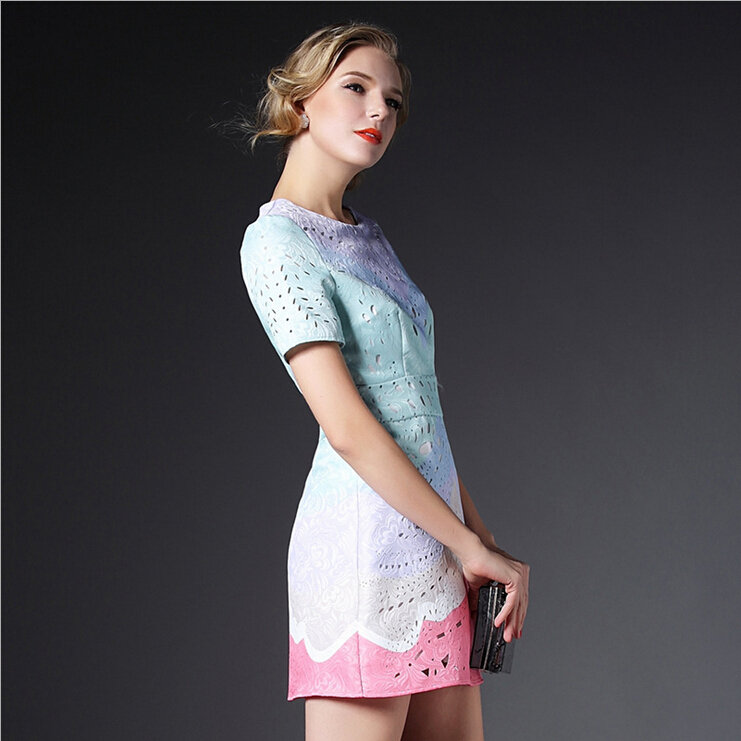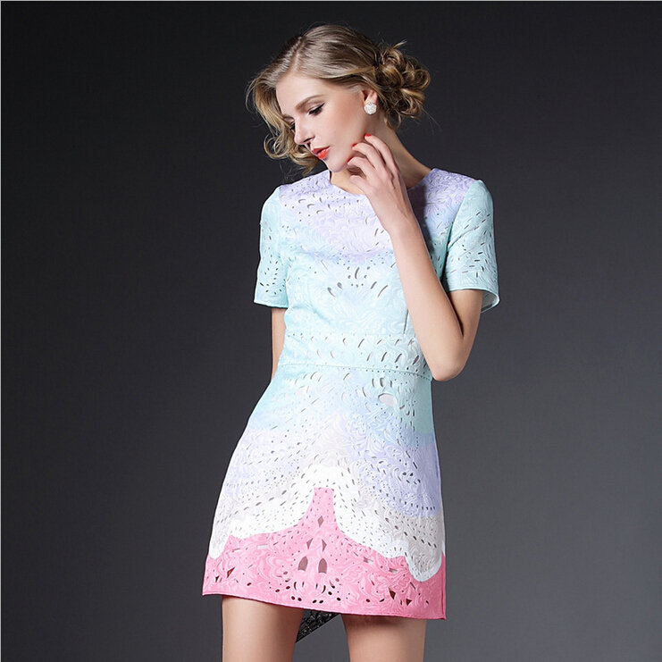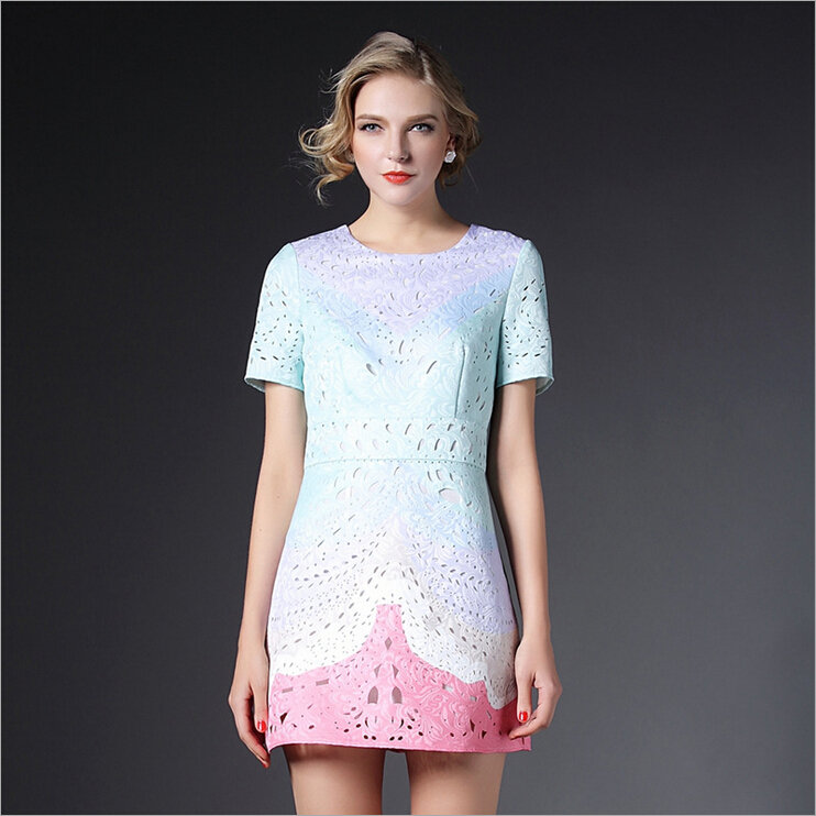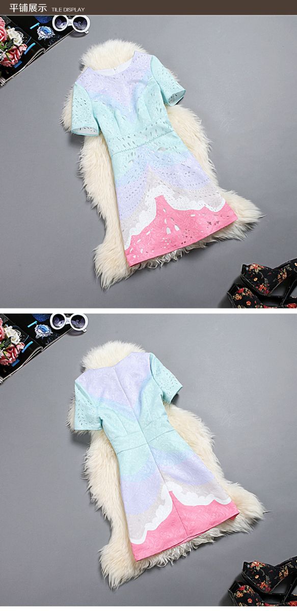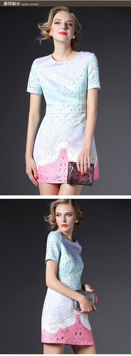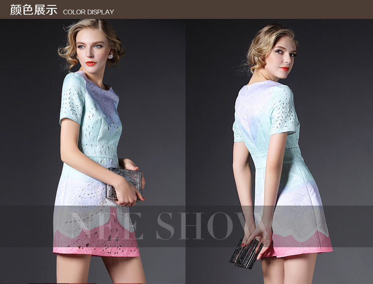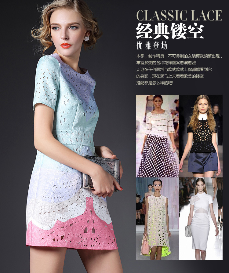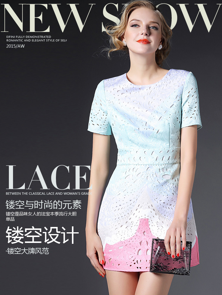 > 2015欧美风春装新款女装连衣裙显瘦气质镂空修身A字裙