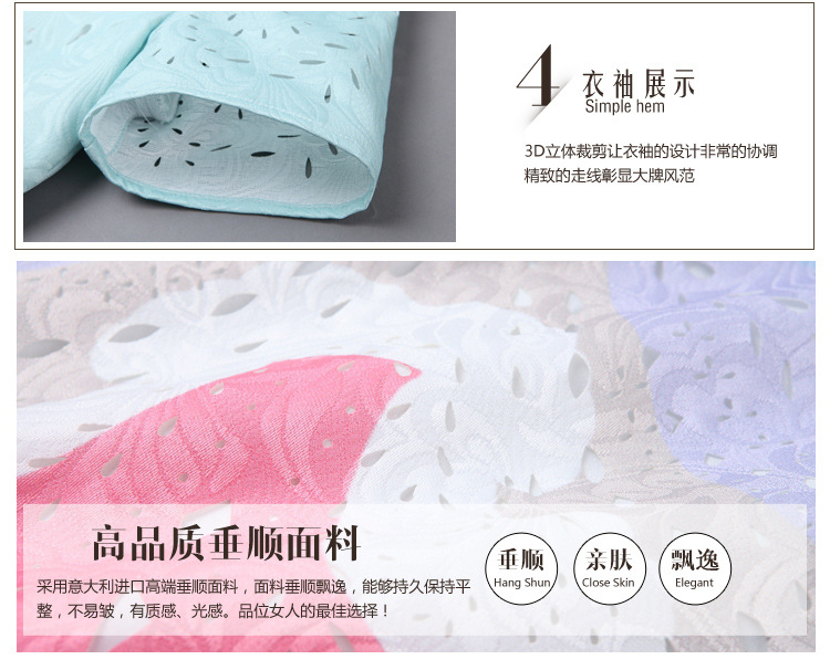 2015春夏新款欧美风印花高档桑蚕丝七分袖A字裙真丝连衣裙