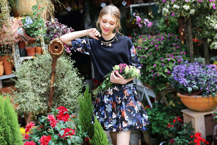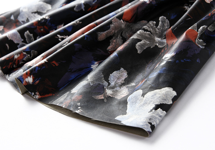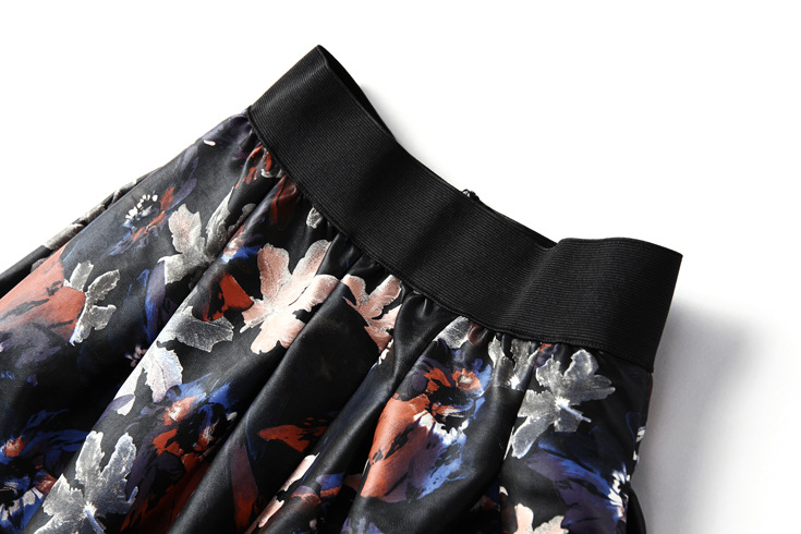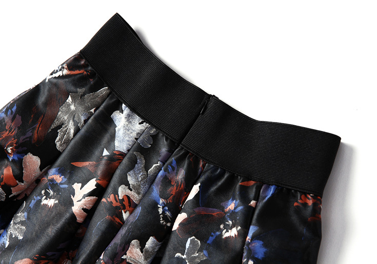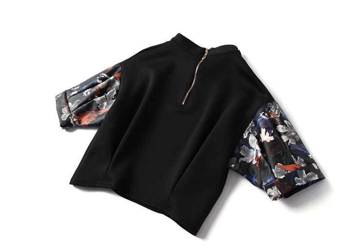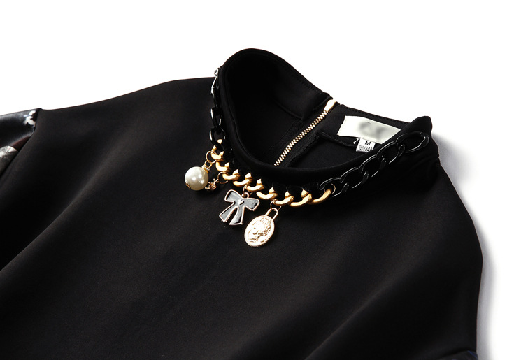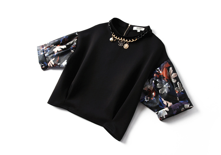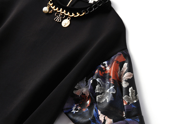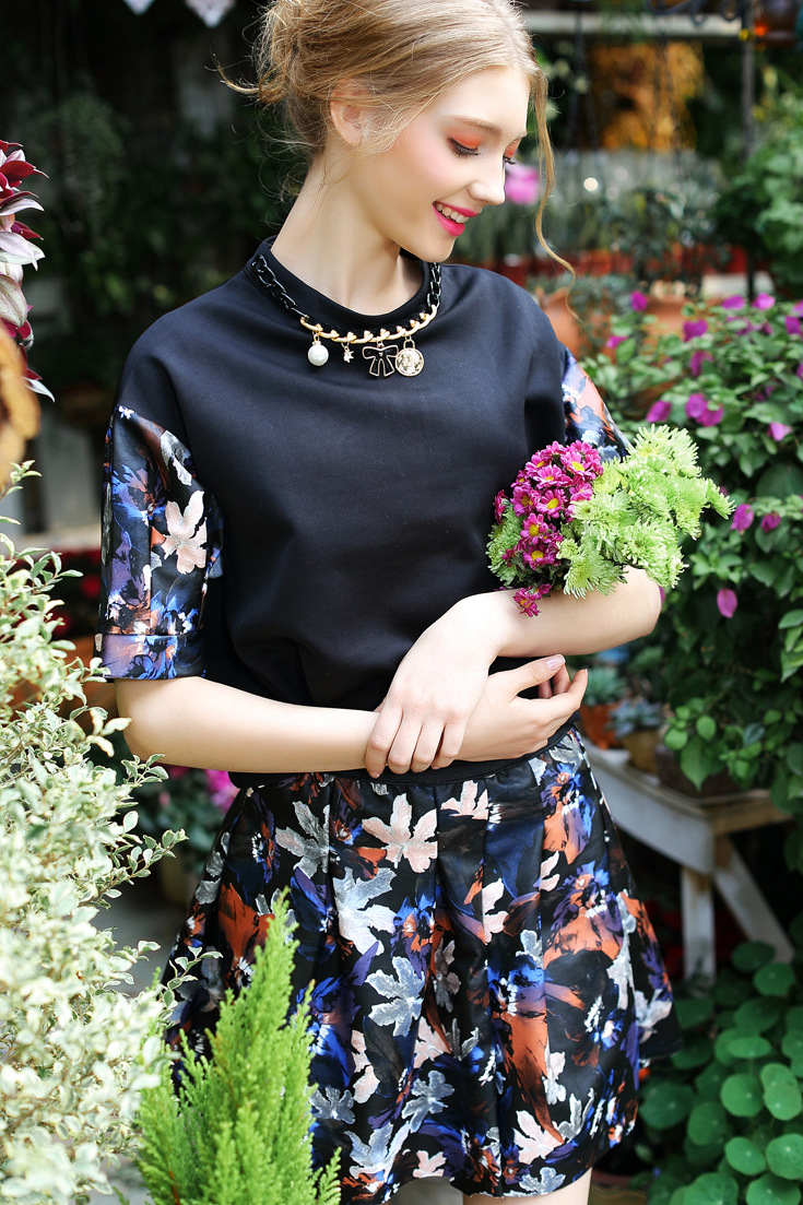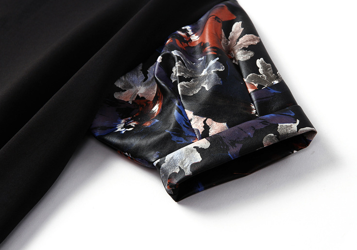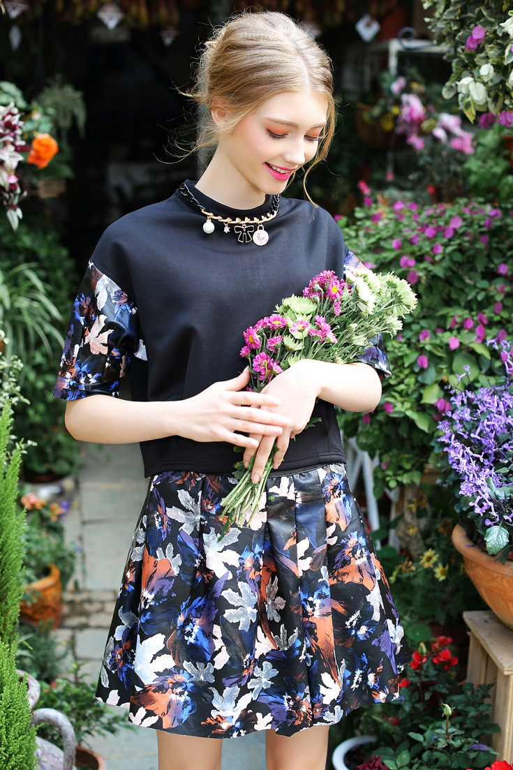 > 2015春季女装新款 立领拼接宽松短上衣+PU印花收腰弹力半裙套装