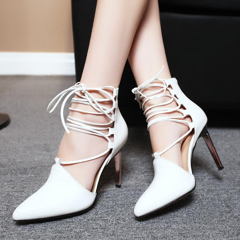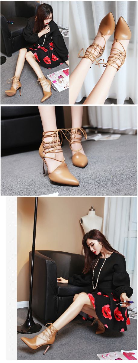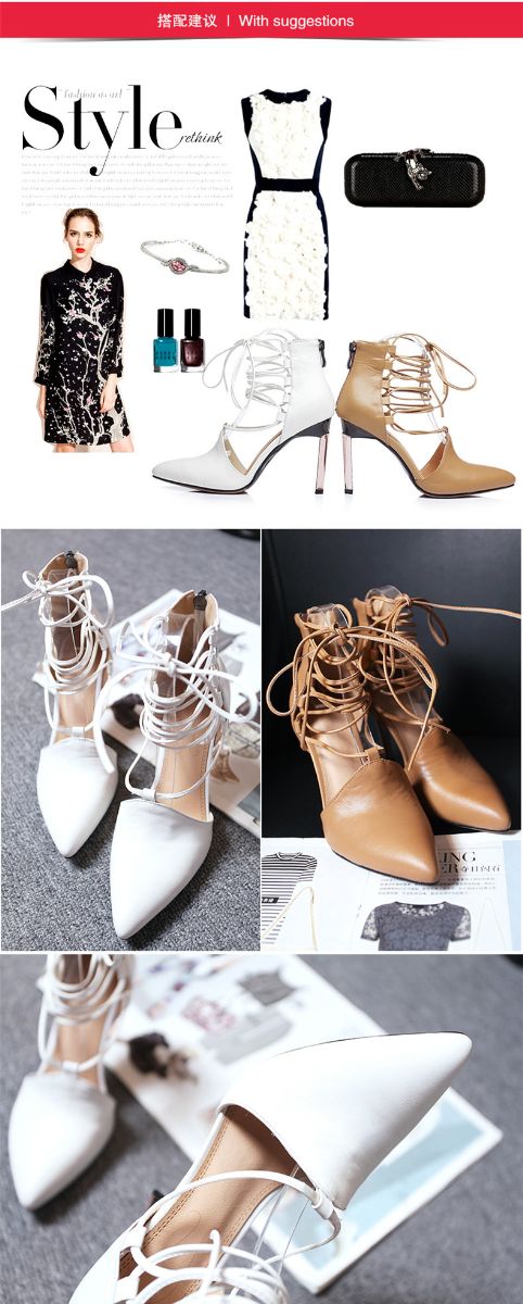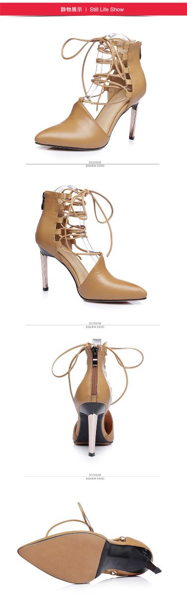 > 2015春夏新款真皮女鞋时尚尖头绑带高跟鞋