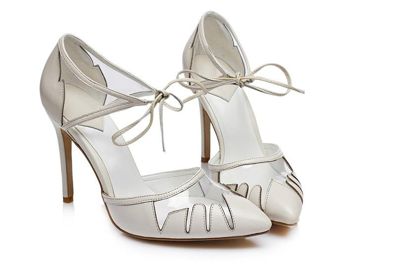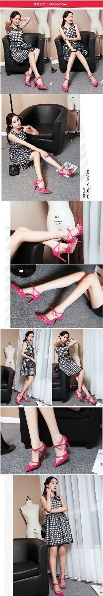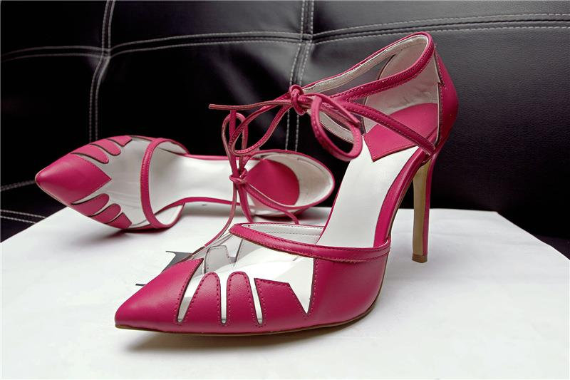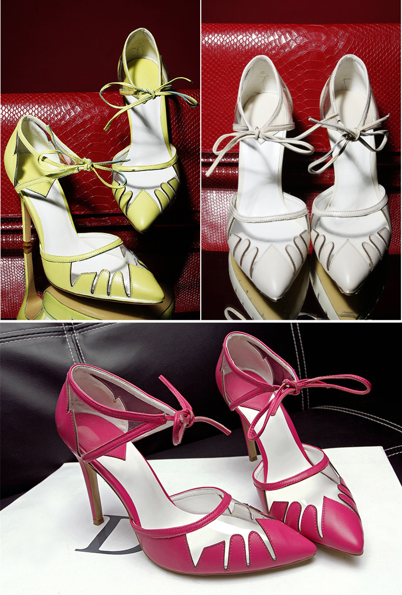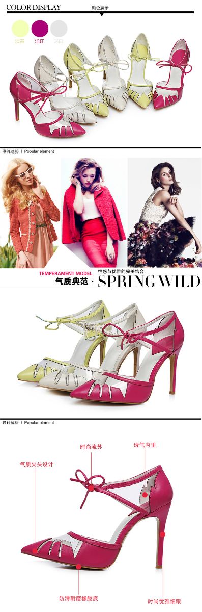 > 2015春夏新款真皮女鞋尖头高跟鞋拼接细跟单鞋女
