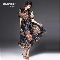 2015夏季新款 立领短袖宫廷印花大摆气质长裙