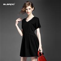 2015品质女装 时尚V领弹力镂空短袖压褶收腰修身连衣裙