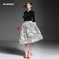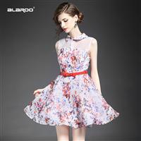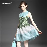2015夏季品牌女装批发气质无袖圆领提花印花收腰修身a字裙