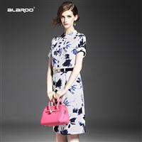 2015夏季新款 气质立领水墨印花修身包臀一步裙送腰带