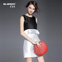 2015夏季女装 简约时尚黑白撞色拼接荷叶边修身包臀假两件连衣裙