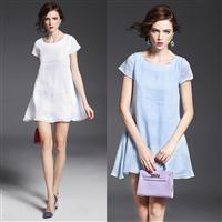 2015欧洲站夏季新款 圆领短袖纯色甜美气质套头宽松亚麻连衣裙